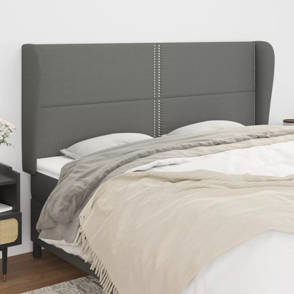 sötétszürke szövet fejtámla szárnyakkal 203x23x118/128 cm