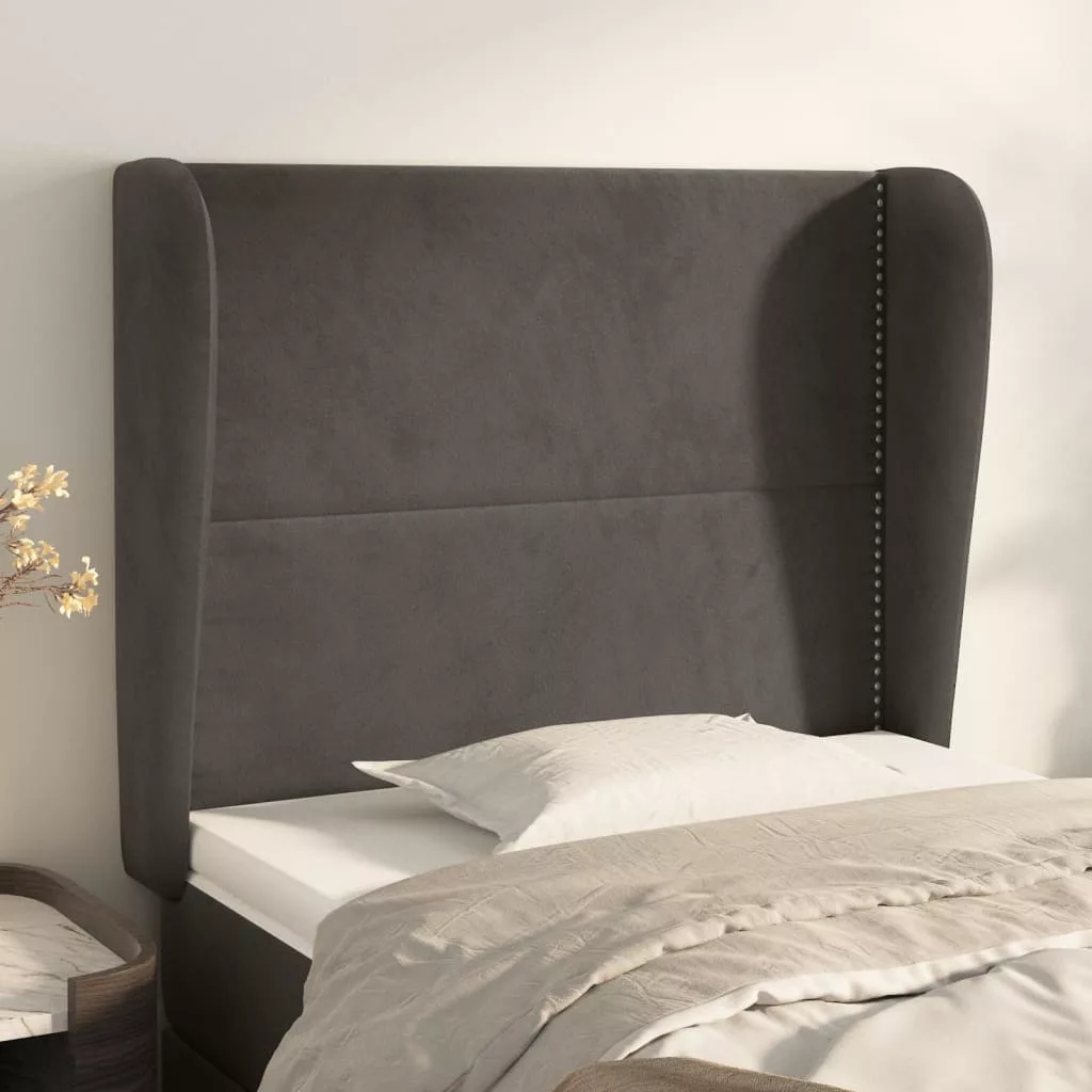 sötétszürke bársony fejtámla szárnyakkal 83 x 23 x 118/128 cm