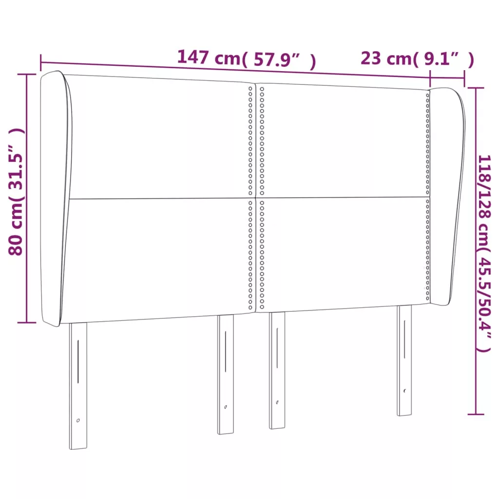 Ez a klasszikus, szárnyas fejtámla stílusos kialakítással rendelkezik teljes megjelenést kölcsönözve ágykeretének, és minden hálószobához illik. Puha bársony: A bársony egy puha, fényűző anyag, amely sűrű, egyenletesen vágott sima szálairól ismert. A bársony anyag jellegzetesen puha, így kényelmes tapintású.Erős és stabil lábak: A fa lábak szilárdságot és stabilitást biztosítanak.Állítható magasság: Az ágy fejtámla magassága tetszés szerint állítható.Kiváló támaszték: Ez az ágyfejléc kiváló háttámaszt nyújt, amikor felül az ágyban olvasni vagy tévét nézni. Megjegyzés:A szállítmány csak a fejtámlát tartalmazza. Az ágyrács és a matrac nincs mellékelve. A hozzáillő kereteket és matracokat megtekintheti áruházunkban.Az egyszerű összeszerelés érdekében minden termékhez mellékelünk összeszerelési útmutatót.