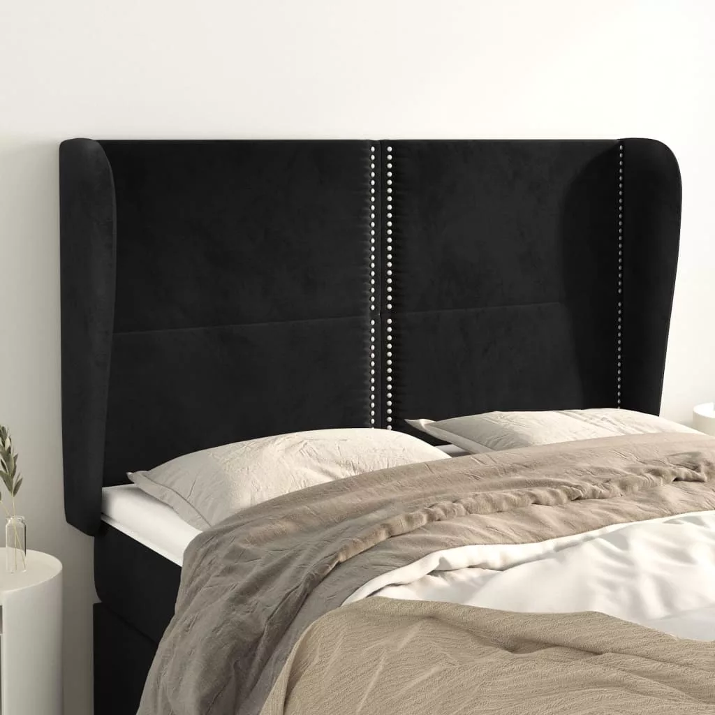 fekete bársony fejtámla szárnyakkal 147 x 23 x 118/128 cm