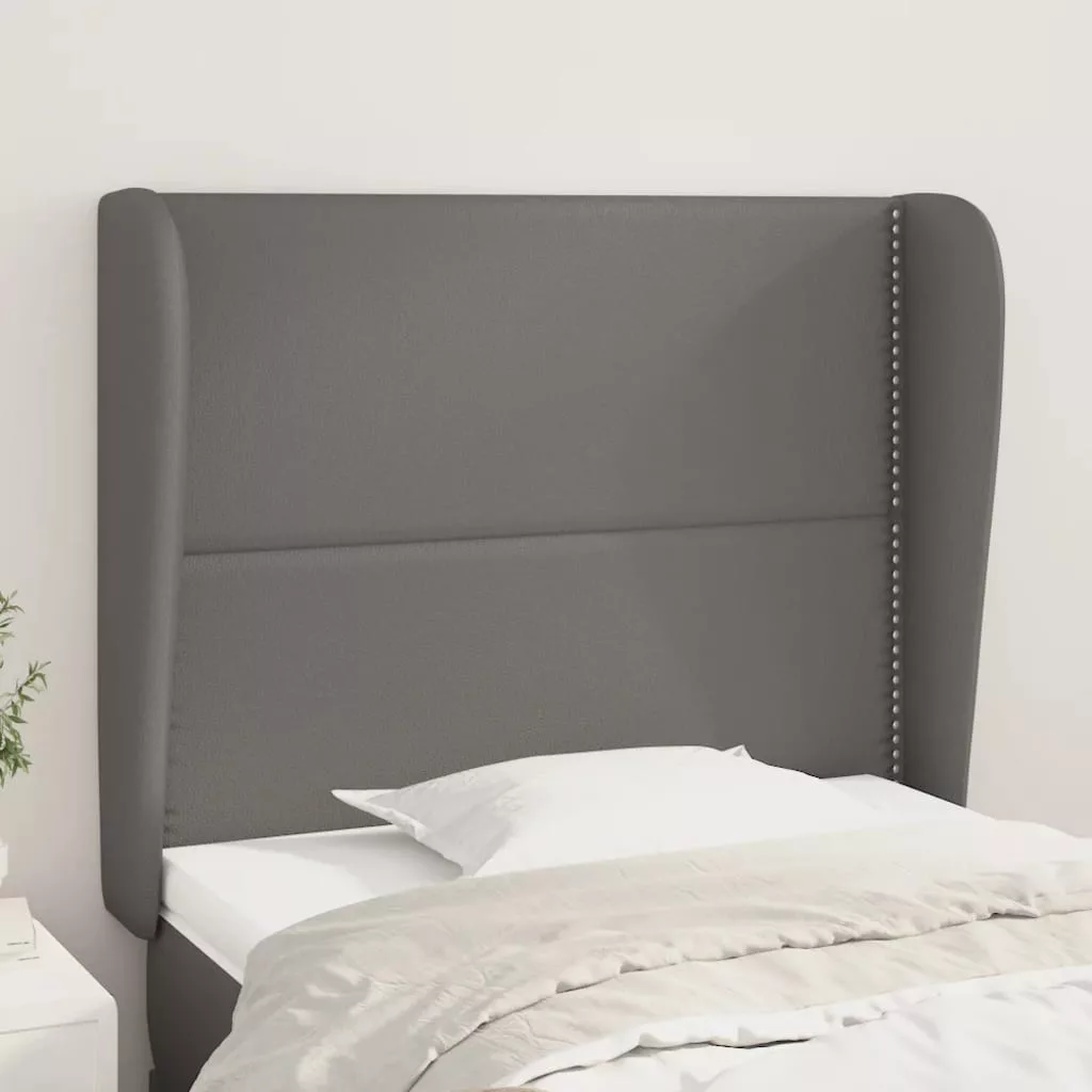 szürke műbőr fejtámla szárnyakkal 93 x 23 x 118/128 cm