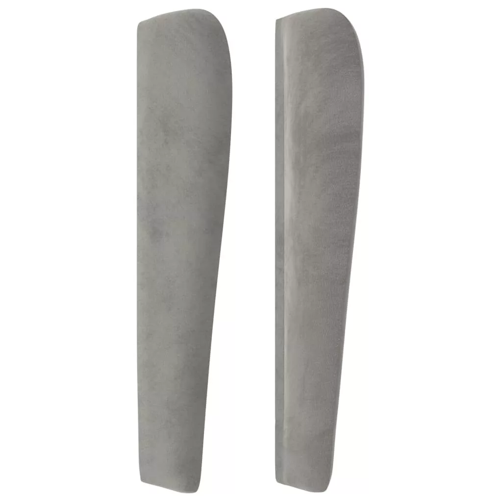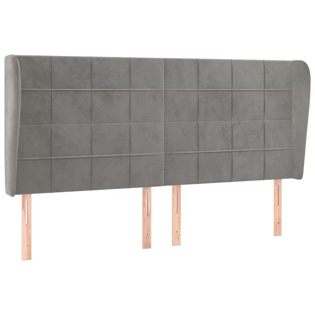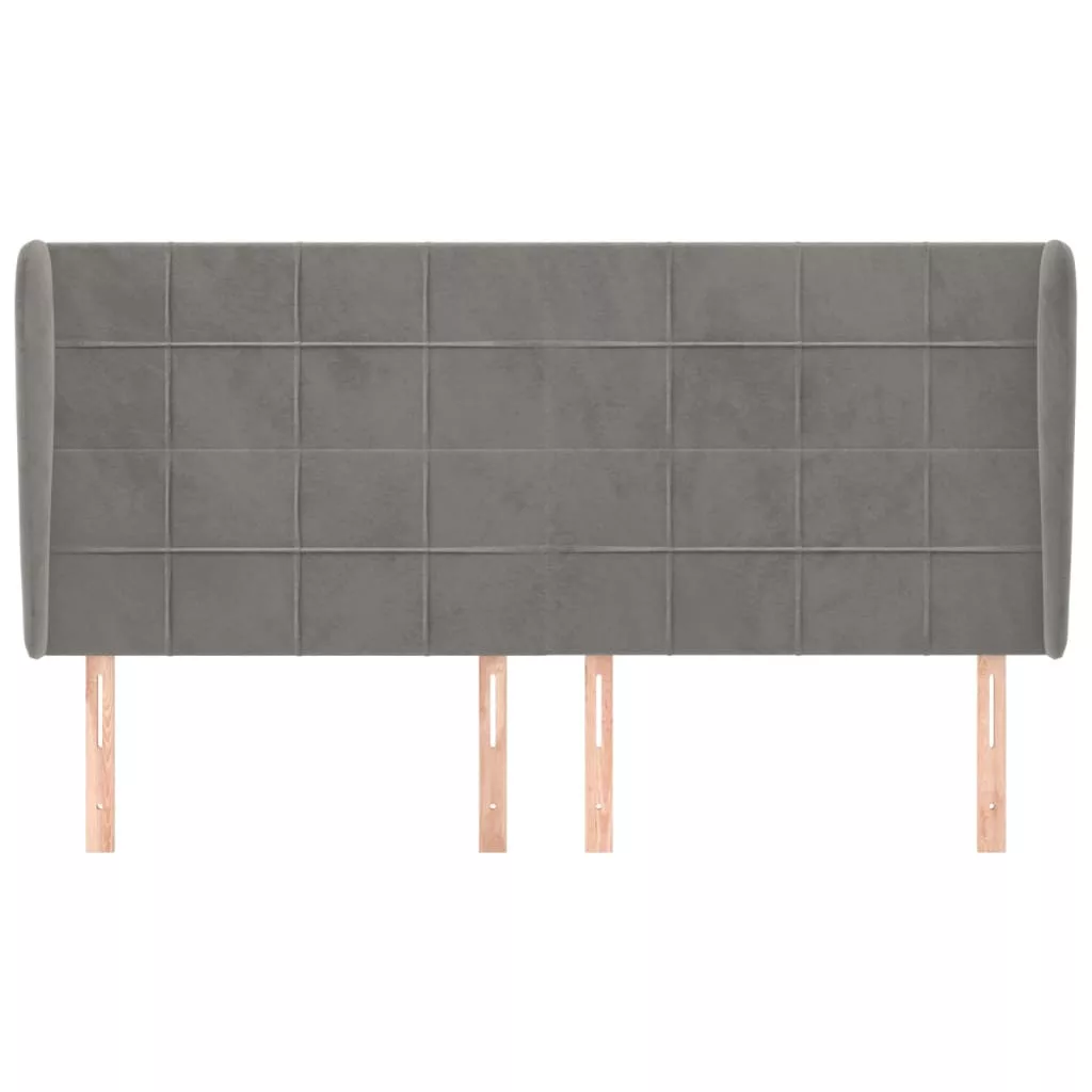 világosszürke bársony fejtámla szárnyakkal 163x23x118/128 cm