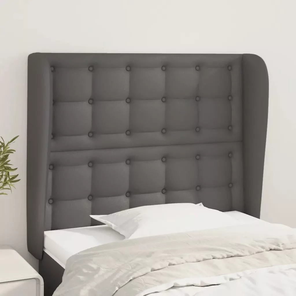 szürke műbőr fejtámla szárnyakkal 93 x 23 x 118/128 cm