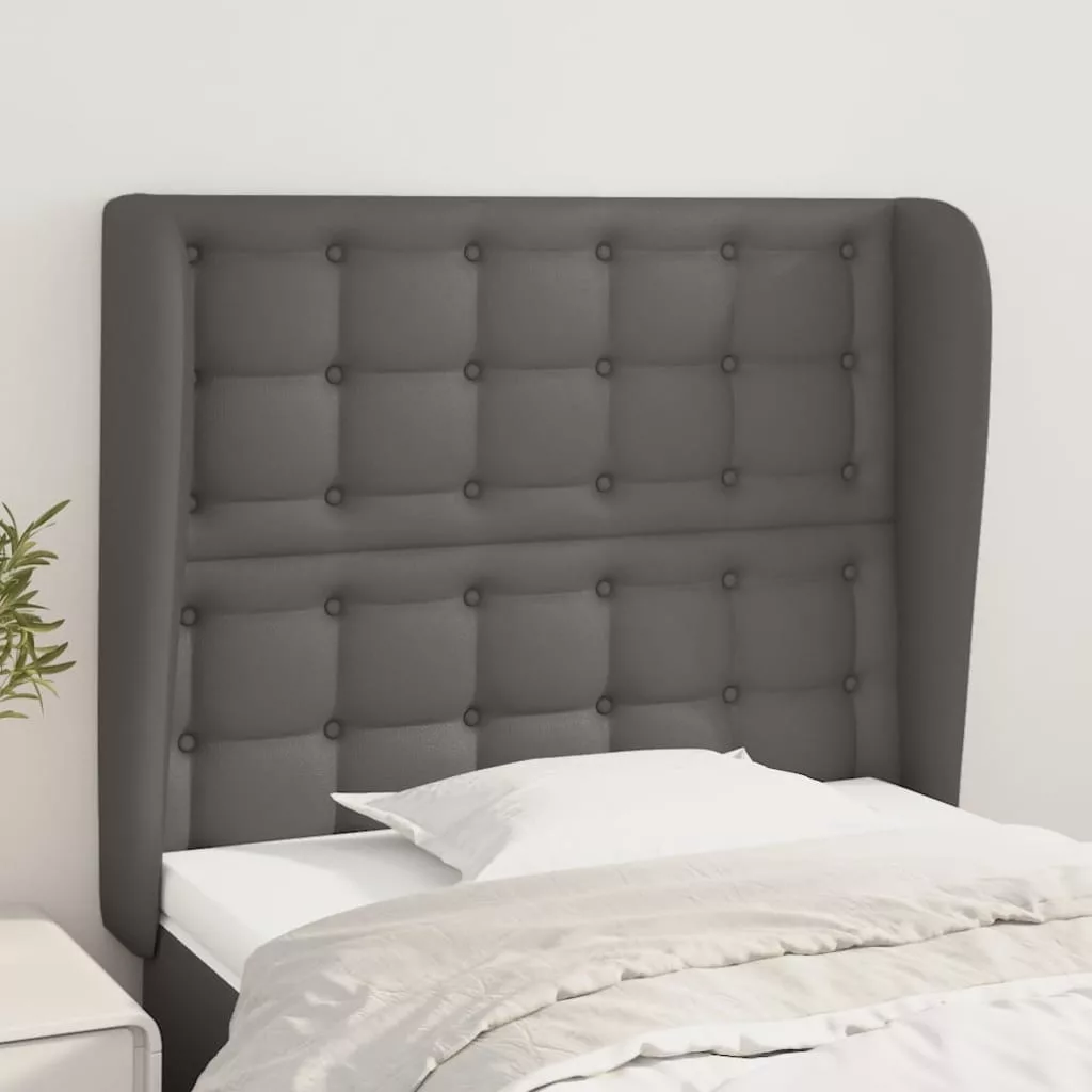 szürke műbőr fejtámla szárnyakkal 103 x 23 x 118/128 cm