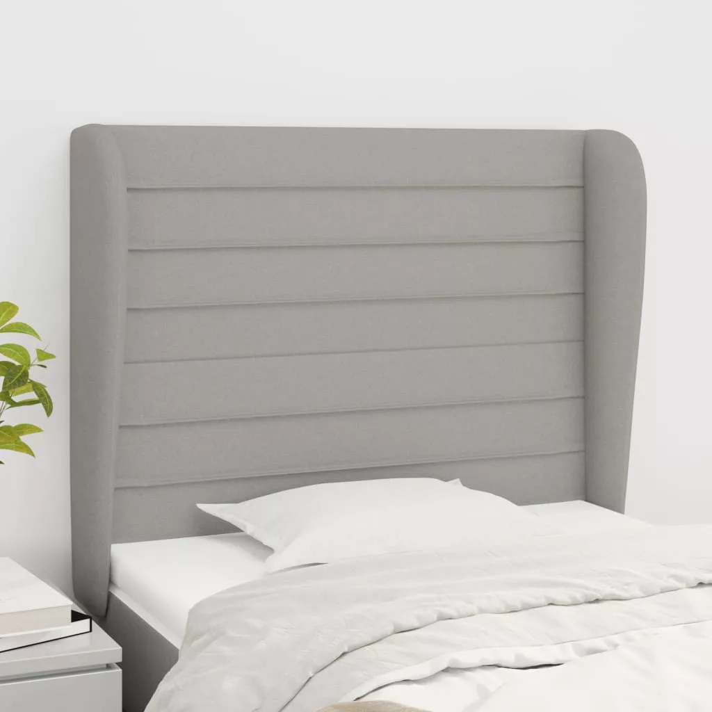 világosszürke szövet fejtámla szárnyakkal 93 x 23 x 118/128 cm