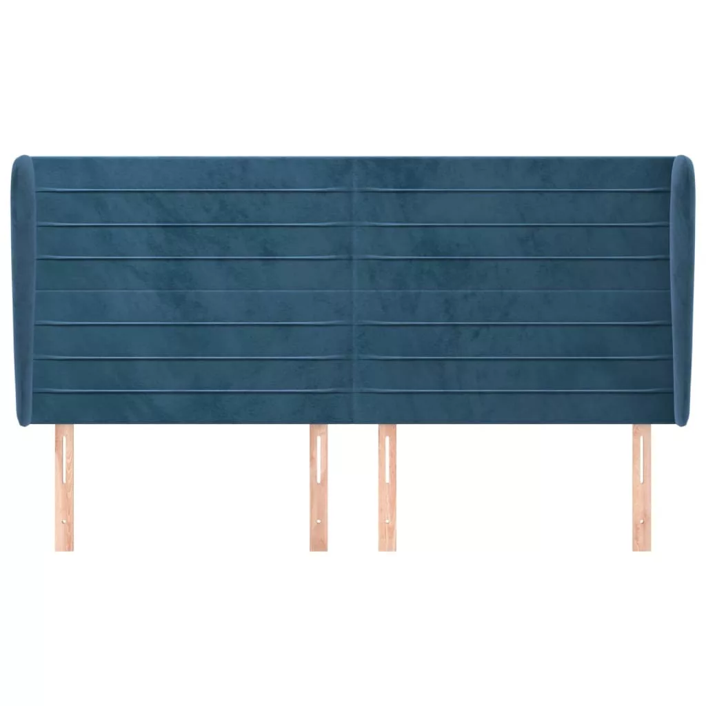 sötétkék bársony fejtámla szárnyakkal 183x23x118/128 cm