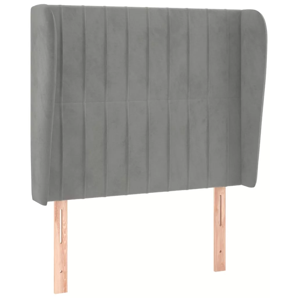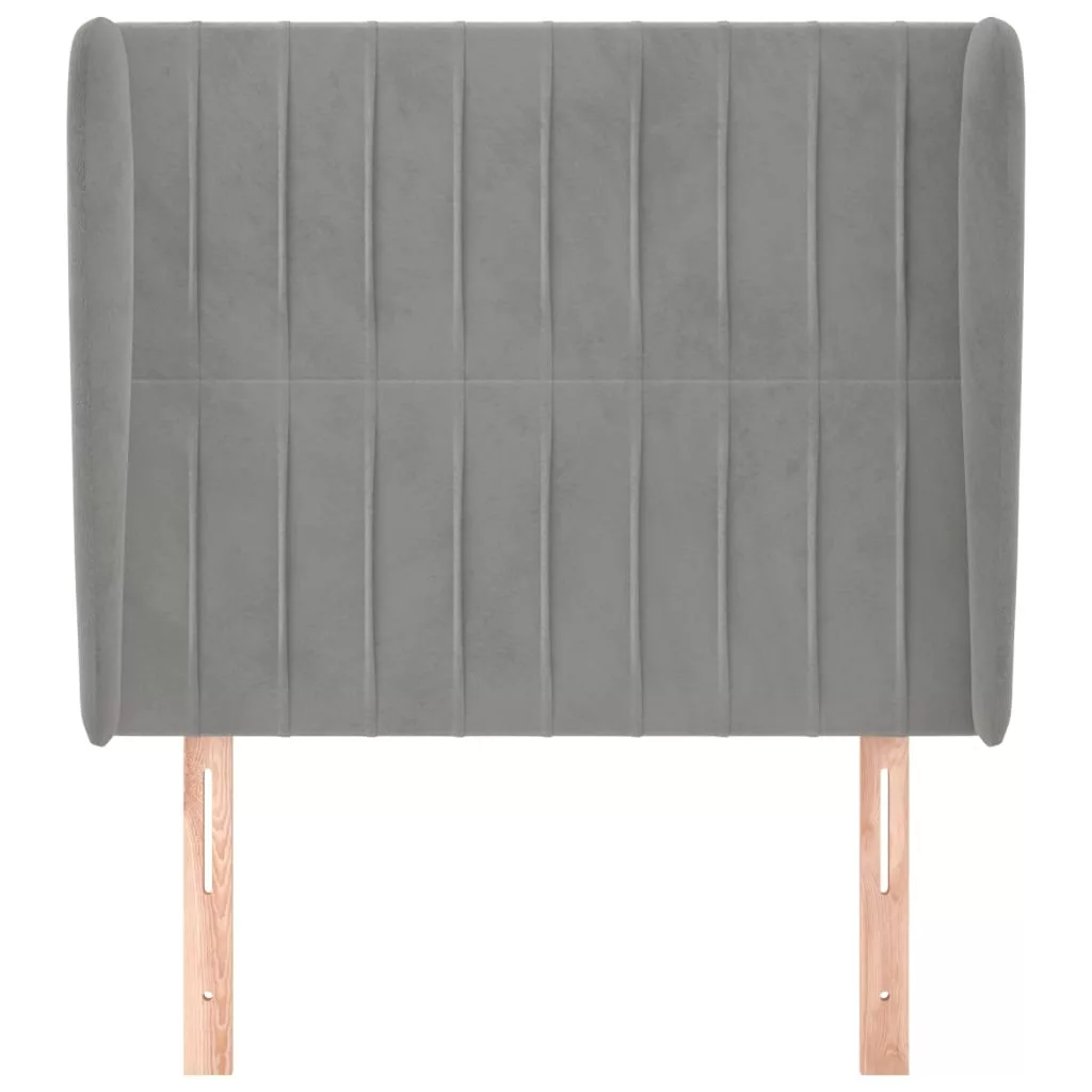 világosszürke bársony fejtámla szárnyakkal 93 x 23 x 118/128 cm