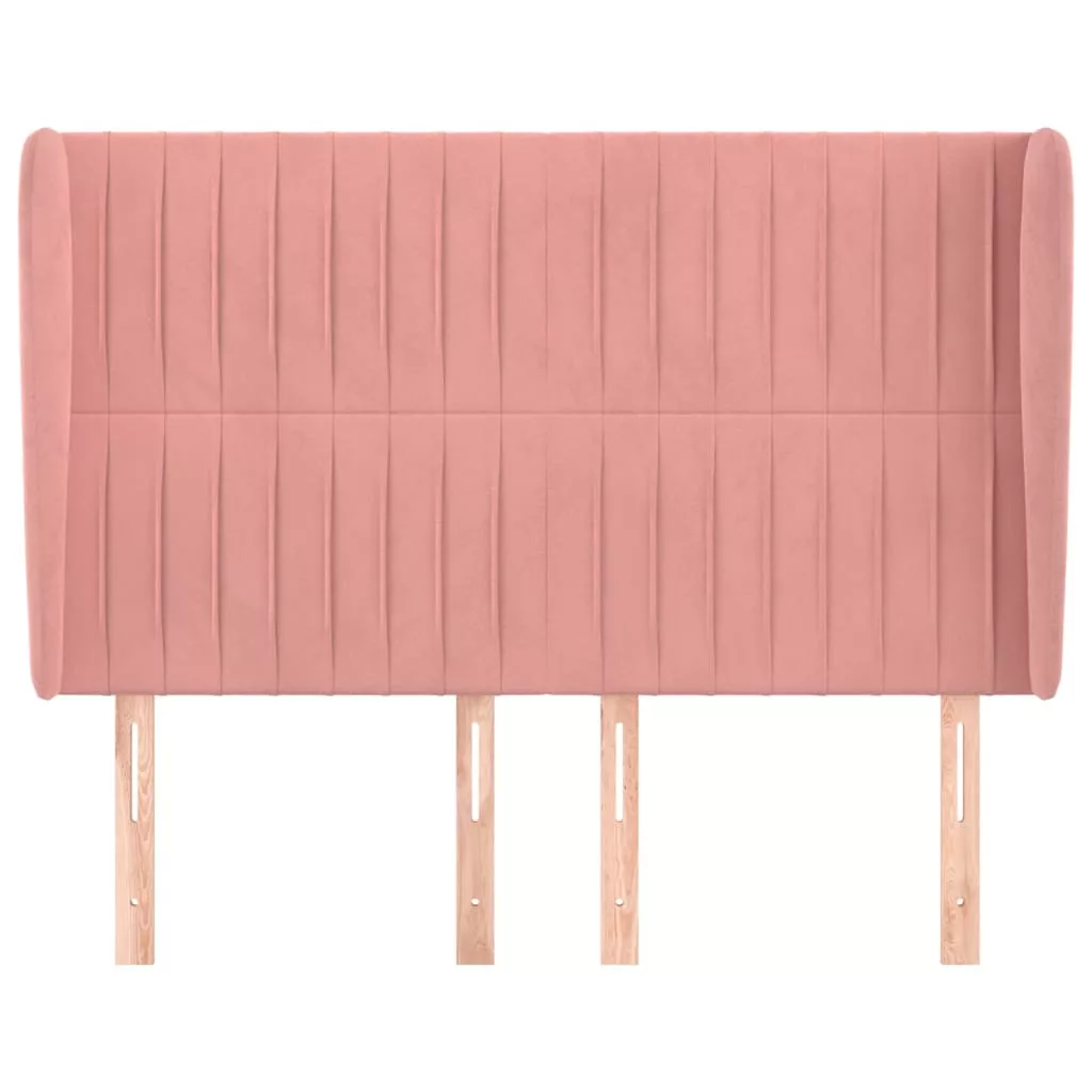 rózsaszín bársony fejtámla szárnyakkal 147x23x118/128 cm