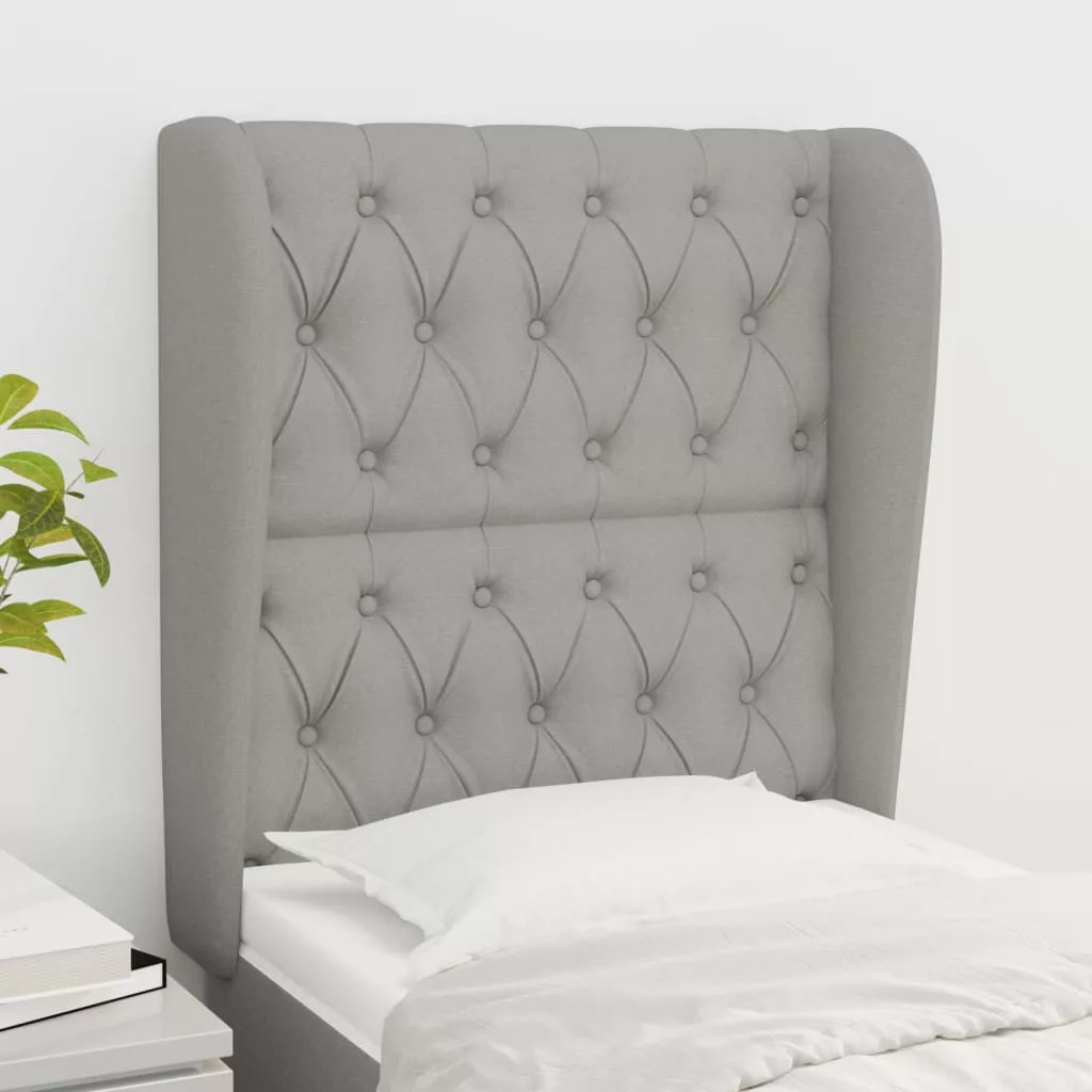 világosszürke szövet fejtámla szárnyakkal 83 x 23 x 118/128 cm