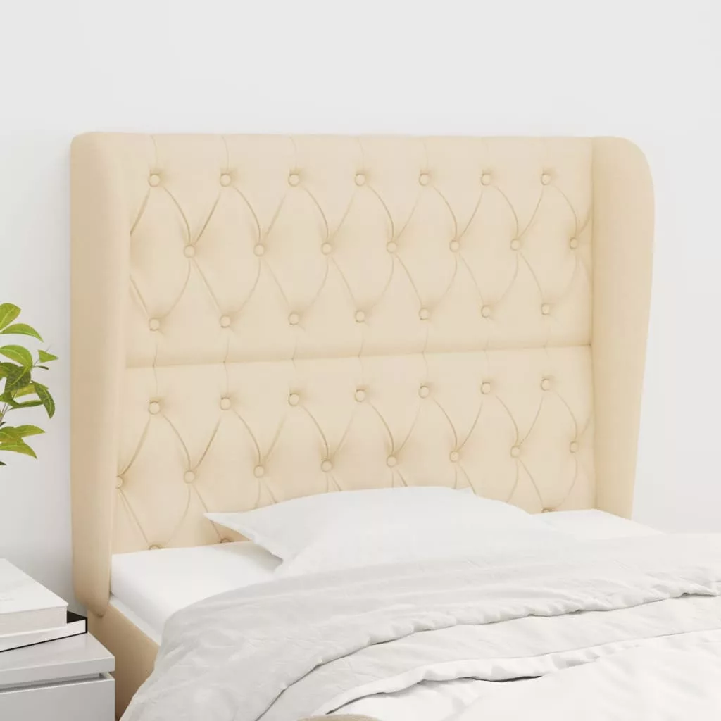 krémszínű szövet fejtámla szárnyakkal 93 x 23 x 118/128 cm