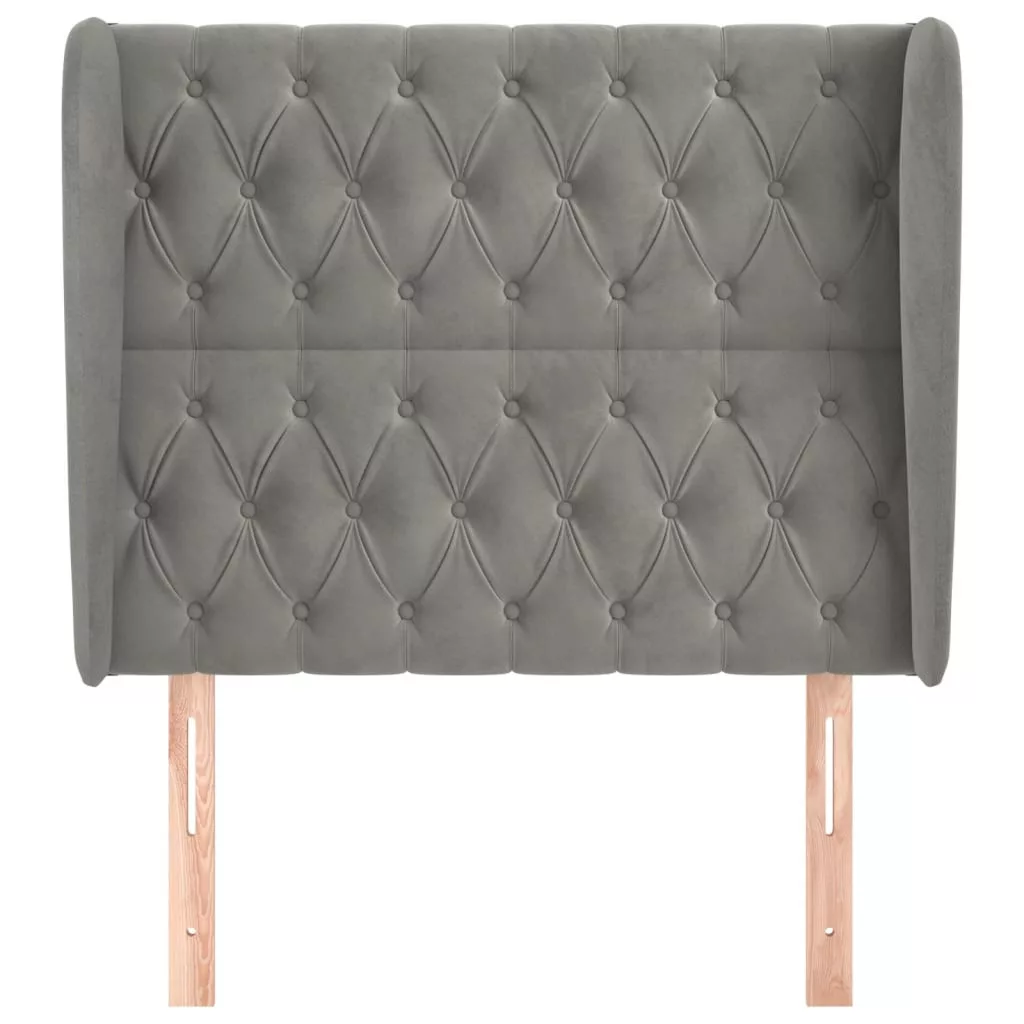 világosszürke bársony fejtámla szárnyakkal 93 x 23 x 118/128 cm