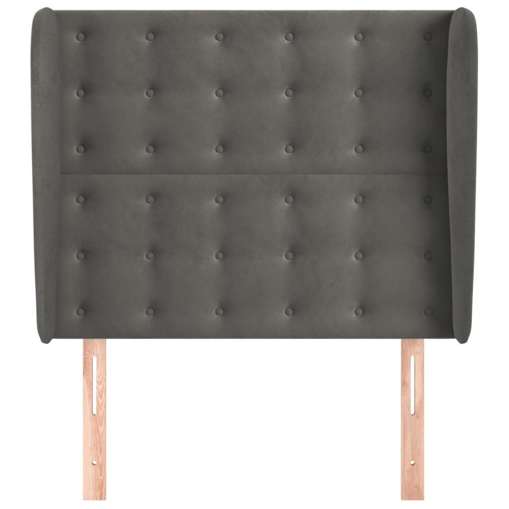 sötétszürke bársony fejtámla szárnyakkal 83 x 23 x 118/128 cm