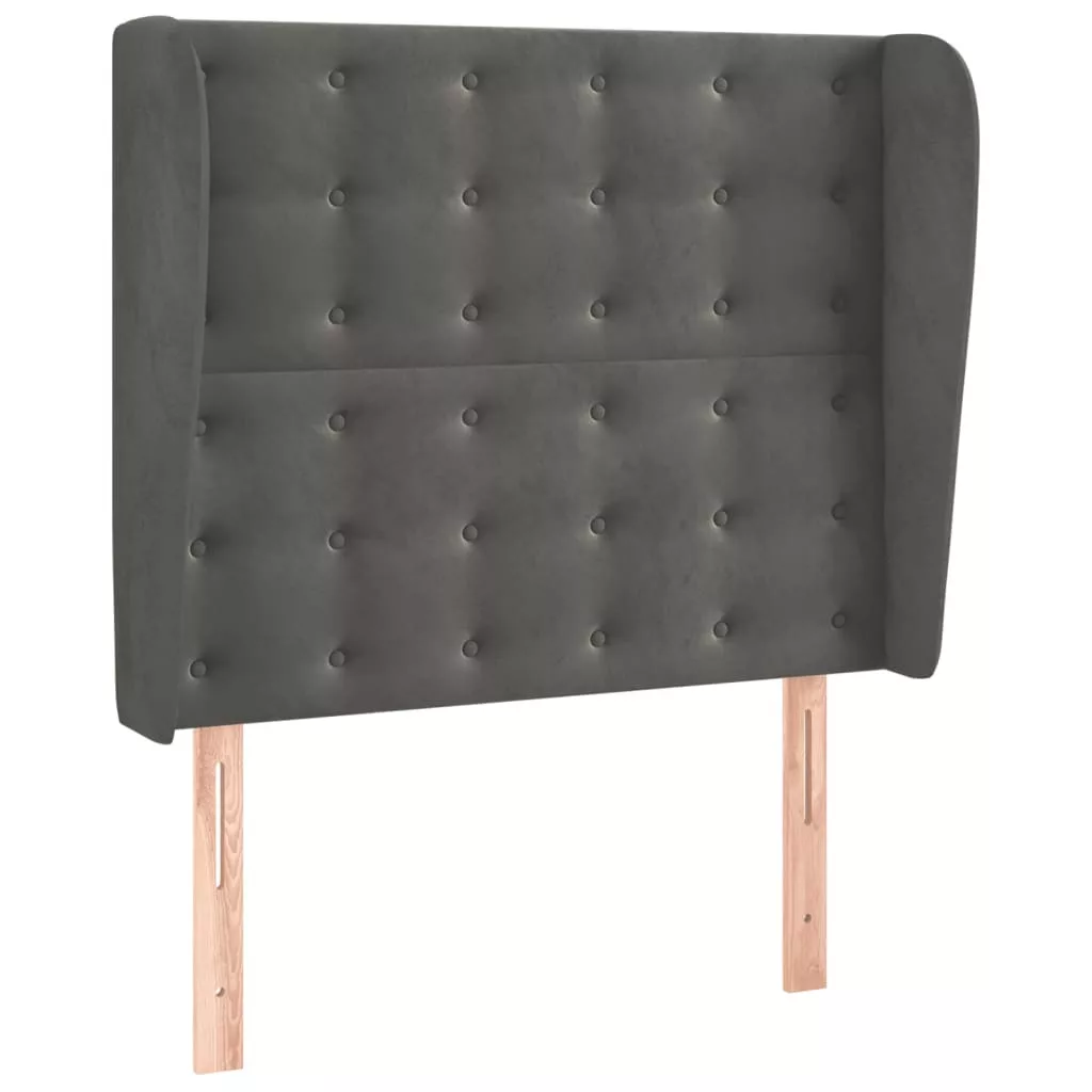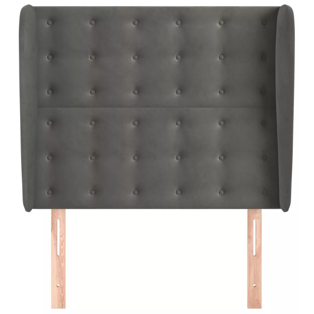sötétszürke bársony fejtámla szárnyakkal 103 x 23 x 118/128 cm