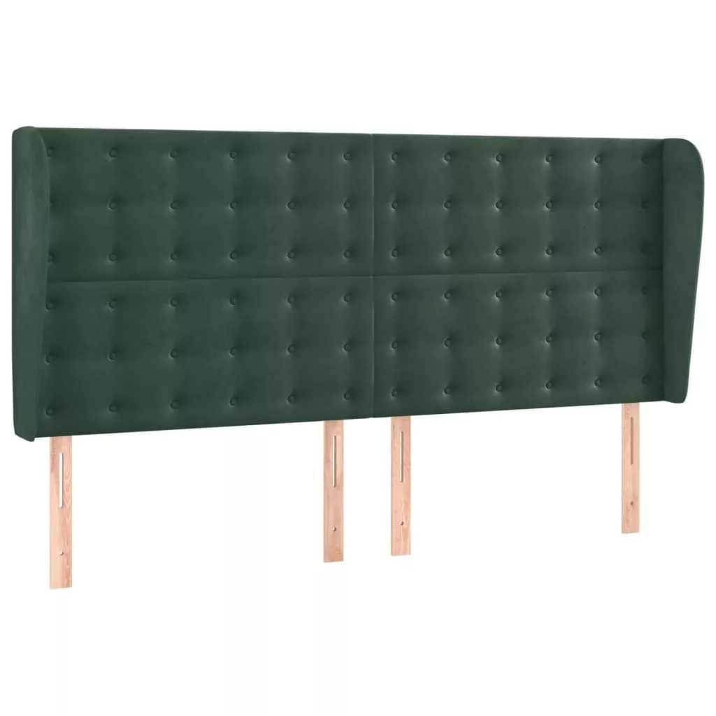 sötétzöld bársony fejtámla szárnyakkal203x23x118/128 cm