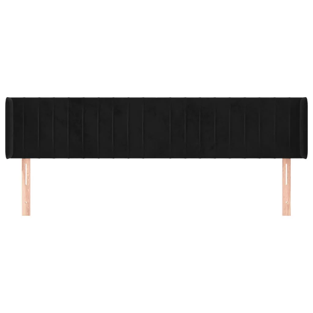 fekete bársony szárnyas fejtámla 183x16x78/88 cm