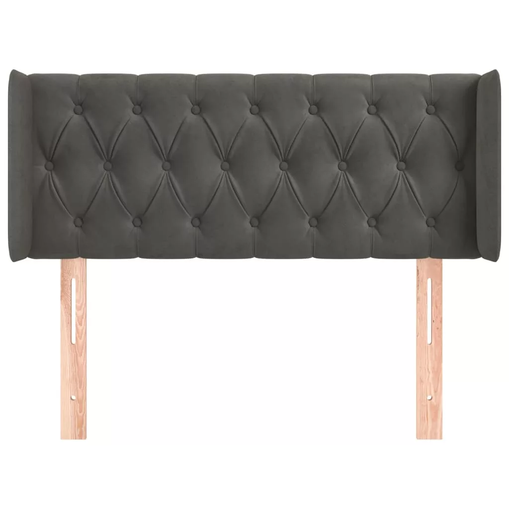 sötétszürke bársony fejtámla szárnyakkal 103x16x78/88 cm