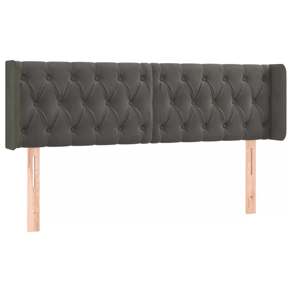 sötétszürke bársony fejtámla szárnyakkal 147x16x78/88 cm