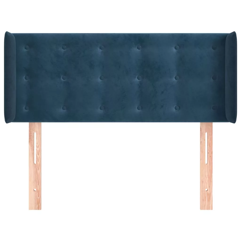 sötétkék bársony fejtámla szárnyakkal 83x16x78/88 cm