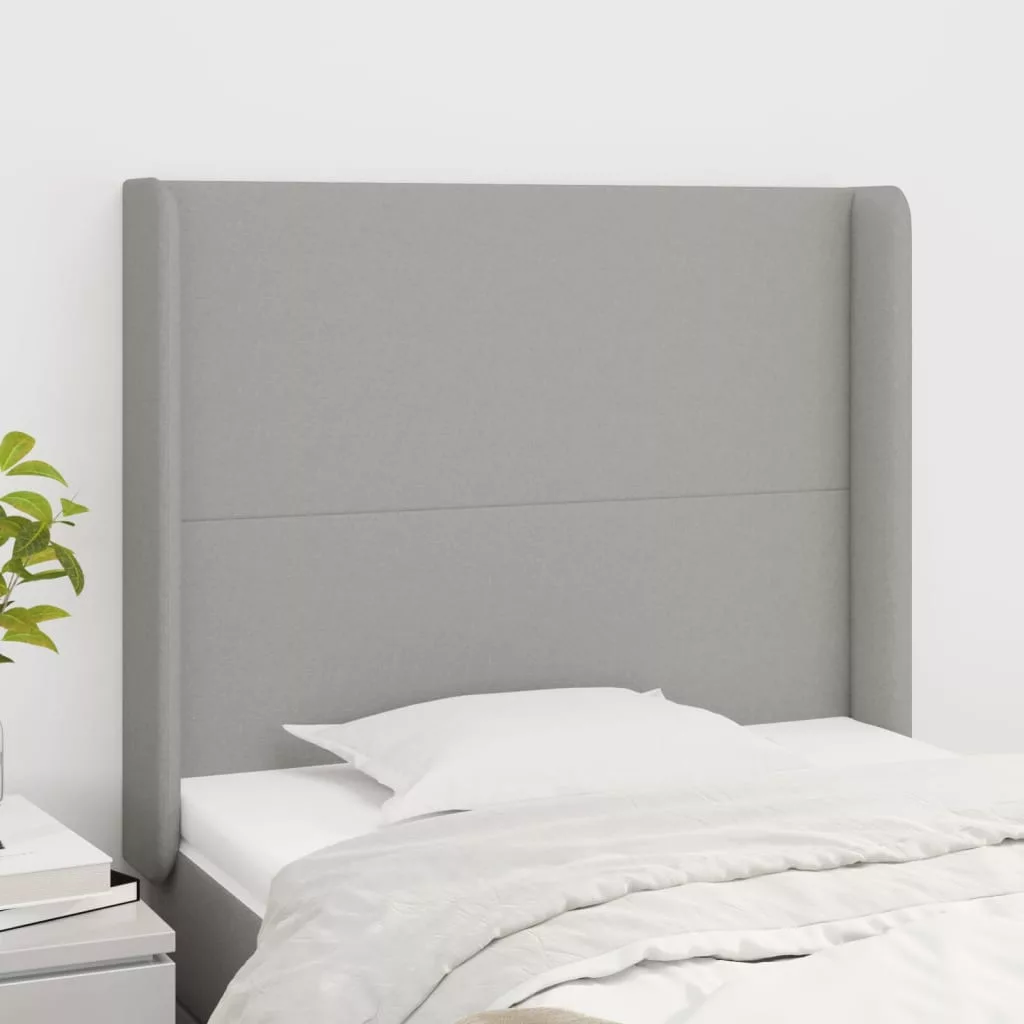 világosszürke szövet fejtámla szárnyakkal 83x16x118/128 cm