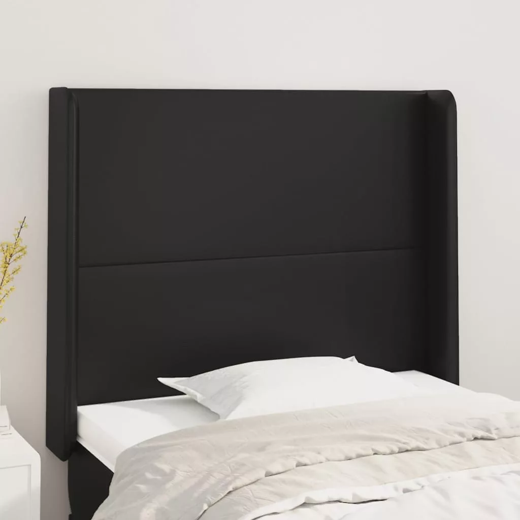 fekete műbőr fejtámla szárnyakkal 103x16x118/128 cm