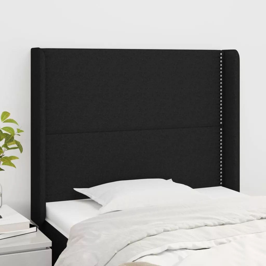 fekete szövet fejtámla szárnyakkal 83x16x118/128 cm