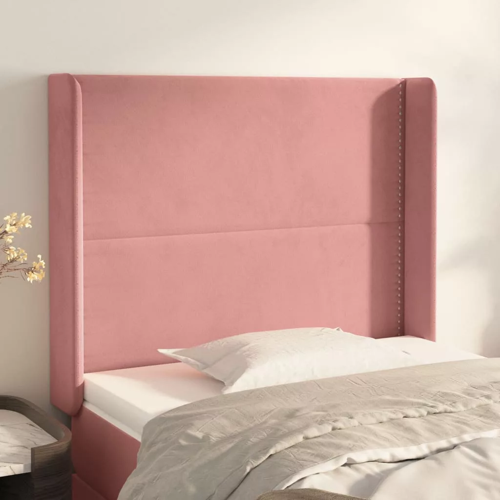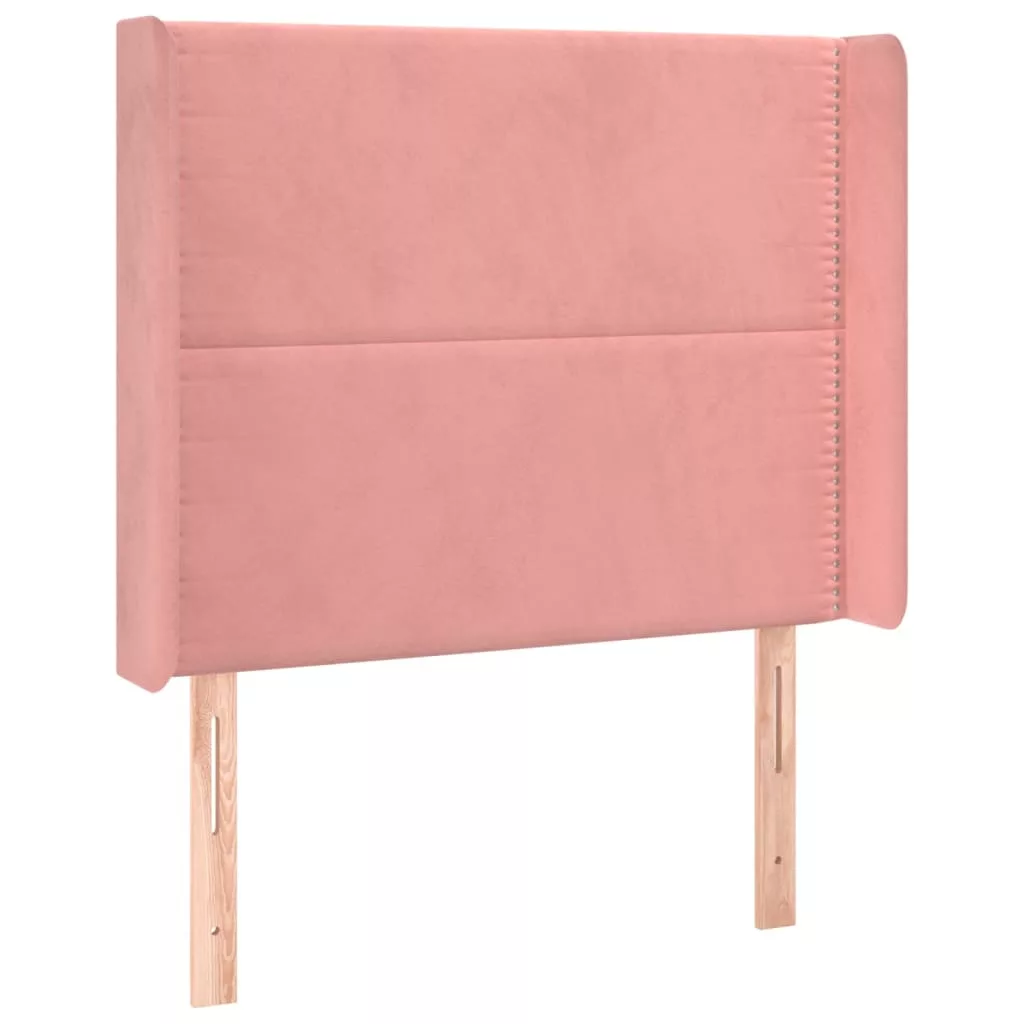 rózsaszín bársony fejtámla szárnyakkal 83x16x118/128 cm
