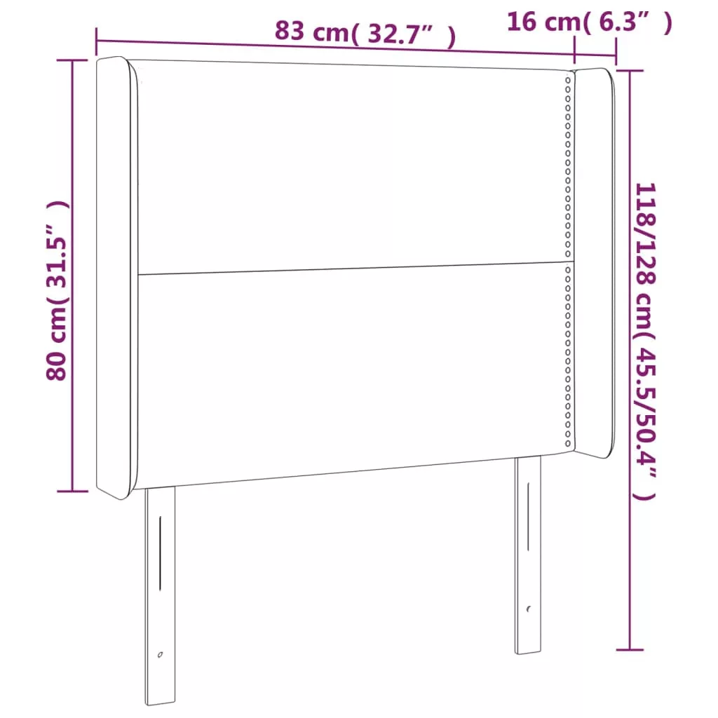 Ez a klasszikus, szárnyas fejtámla stílusos kialakítással rendelkezik teljes megjelenést kölcsönözve ágykeretének, és minden hálószobához illik. Puha bársony: A bársony egy puha, fényűző anyag, amely sűrű, egyenletesen vágott sima szálairól ismert. A bársony anyag jellegzetesen puha, így kényelmes tapintású.Erős és stabil lábak: A fa lábak szilárdságot és stabilitást biztosítanak.Állítható magasság: Az ágy fejtámla magassága tetszés szerint állítható.Kiváló támaszték: Ez az ágyfejléc kiváló háttámaszt nyújt, amikor felül az ágyban olvasni vagy tévét nézni. Megjegyzés:A szállítmány csak a fejtámlát tartalmazza. Az ágyrács és a matrac nincs mellékelve. A hozzáillő kereteket és matracokat megtekintheti áruházunkban.Az egyszerű összeszerelés érdekében minden termékhez mellékelünk összeszerelési útmutatót.