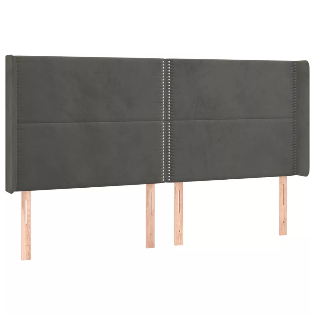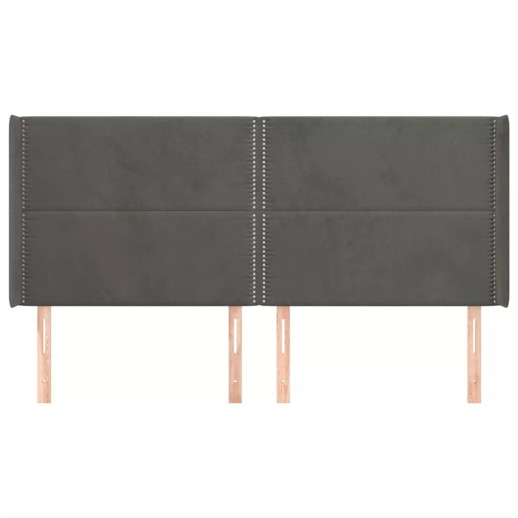 sötétszürke bársony fejtámla szárnyakkal 203x16x118/128 cm