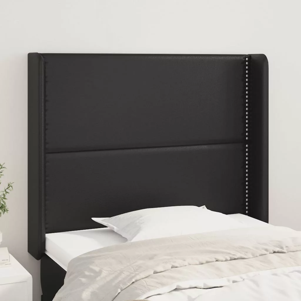 fekete műbőr fejtámla szárnyakkal 93x16x118/128 cm