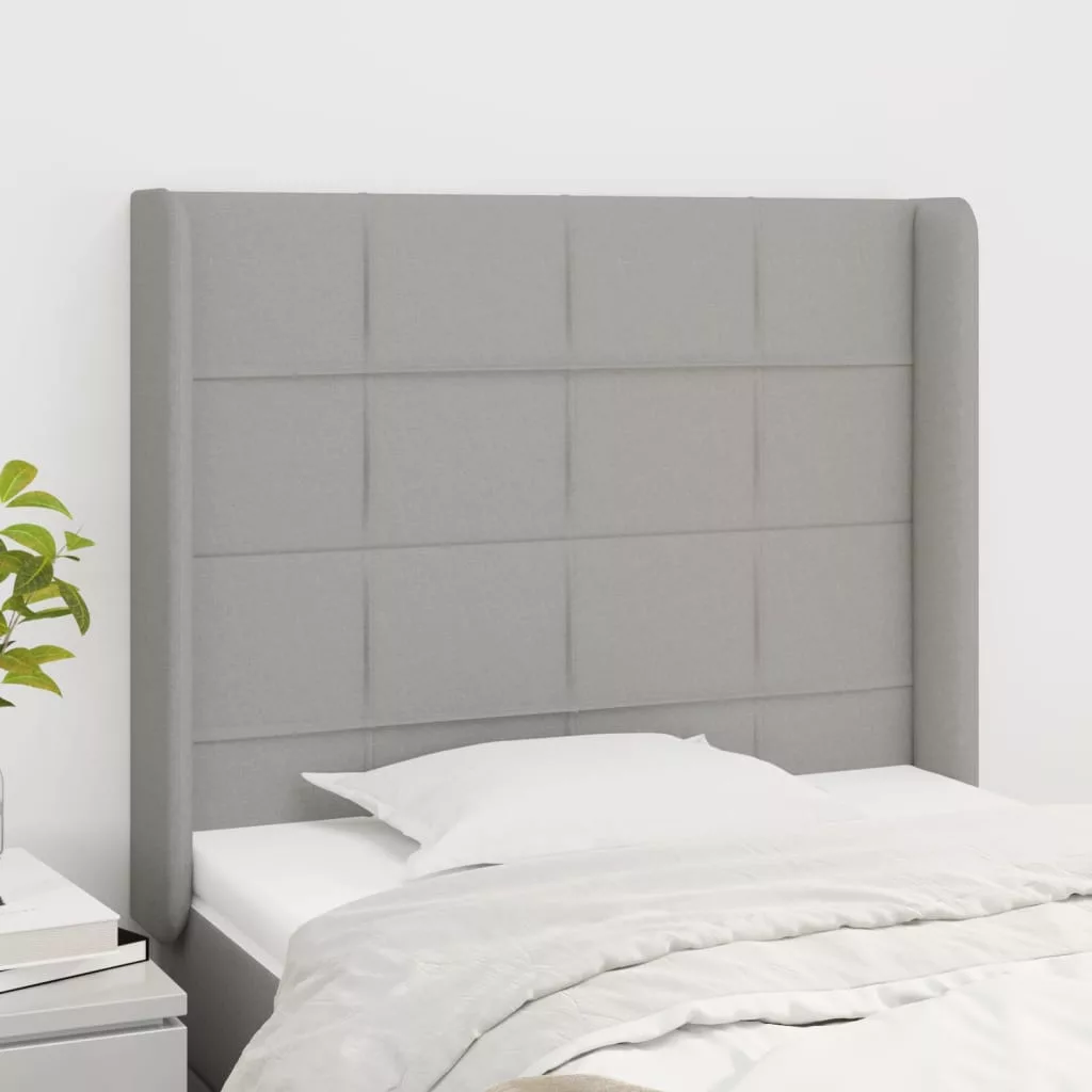 világosszürke szövet fejtámla szárnyakkal 103x16x118/128 cm