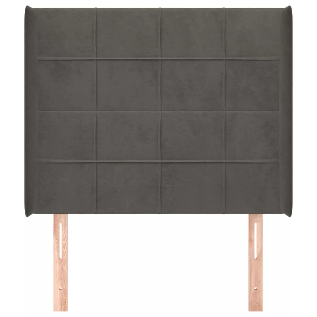 sötétszürke bársony fejtámla szárnyakkal 93x16x118/128 cm