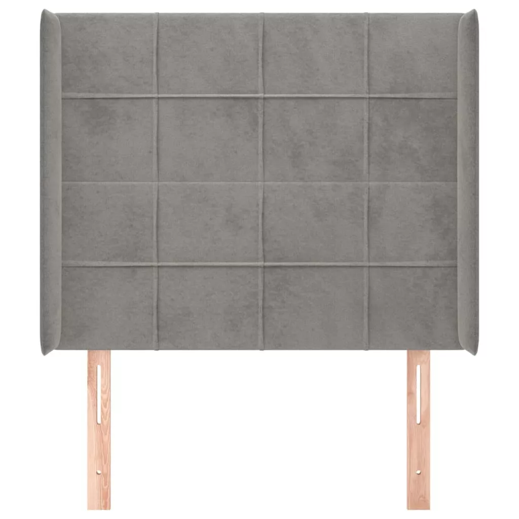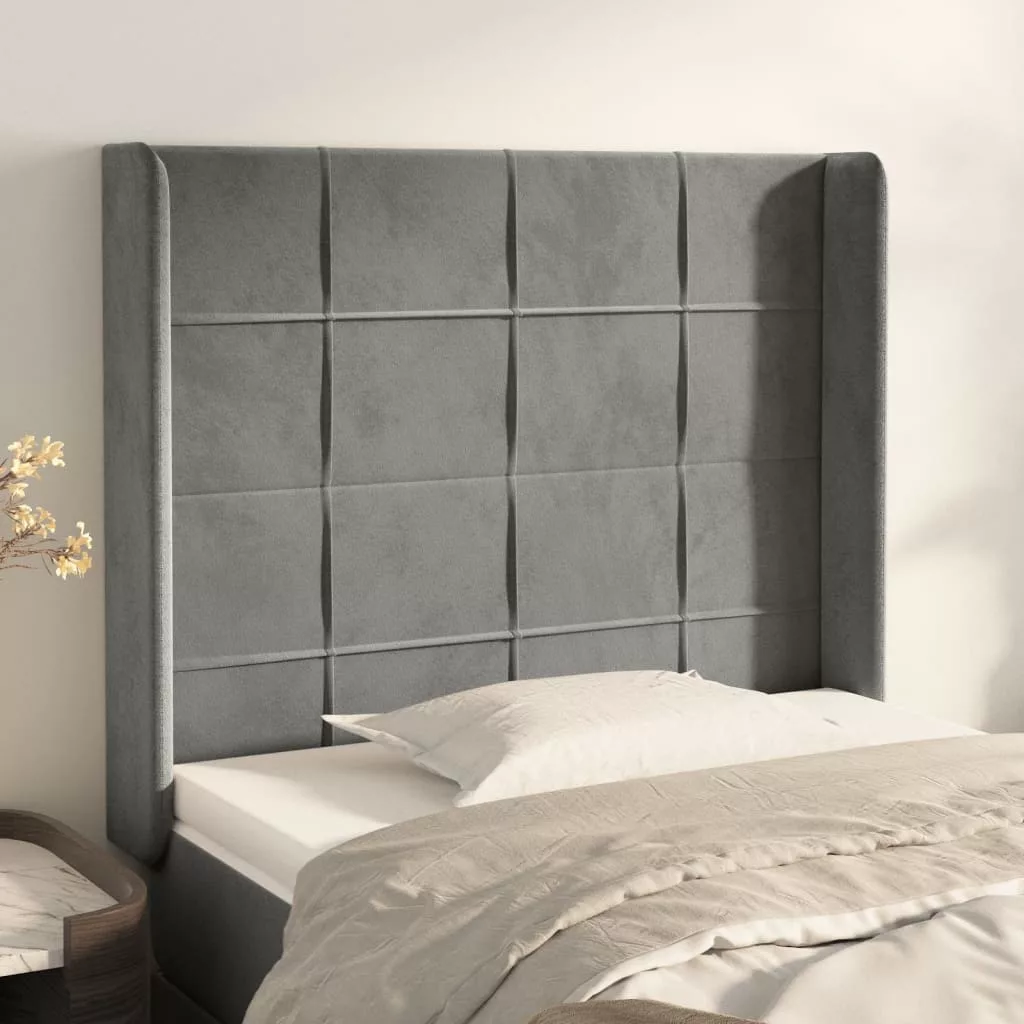világosszürke bársony fejtámla szárnyakkal 103x16x118/128 cm