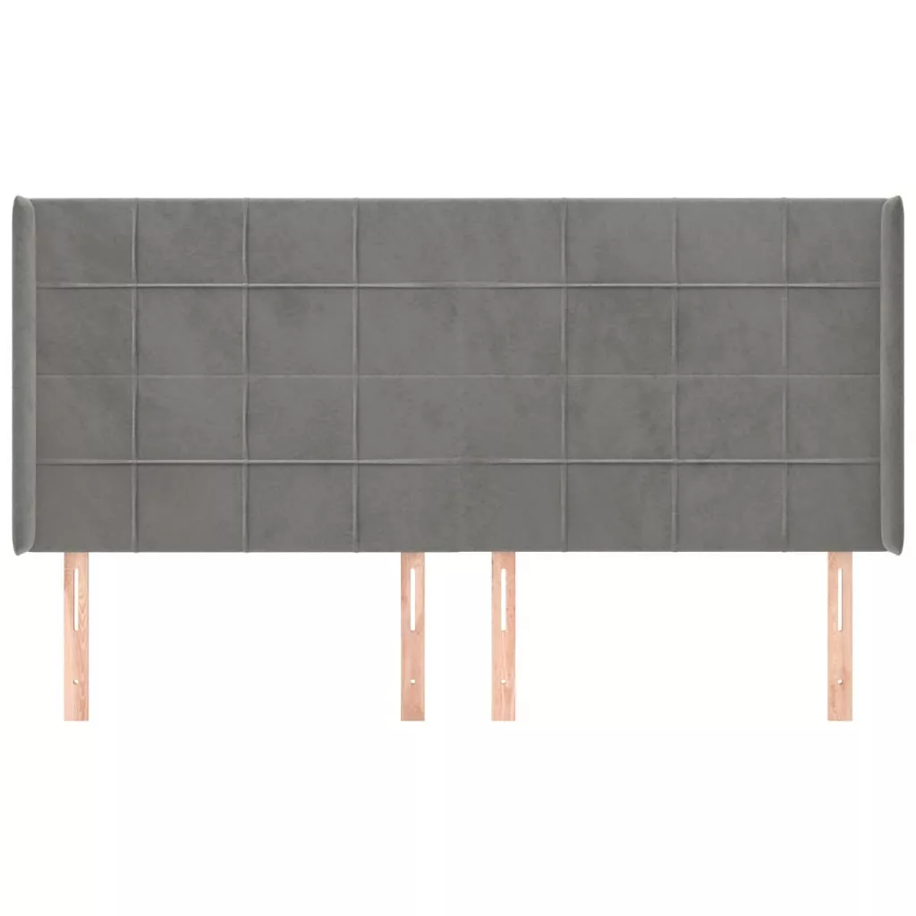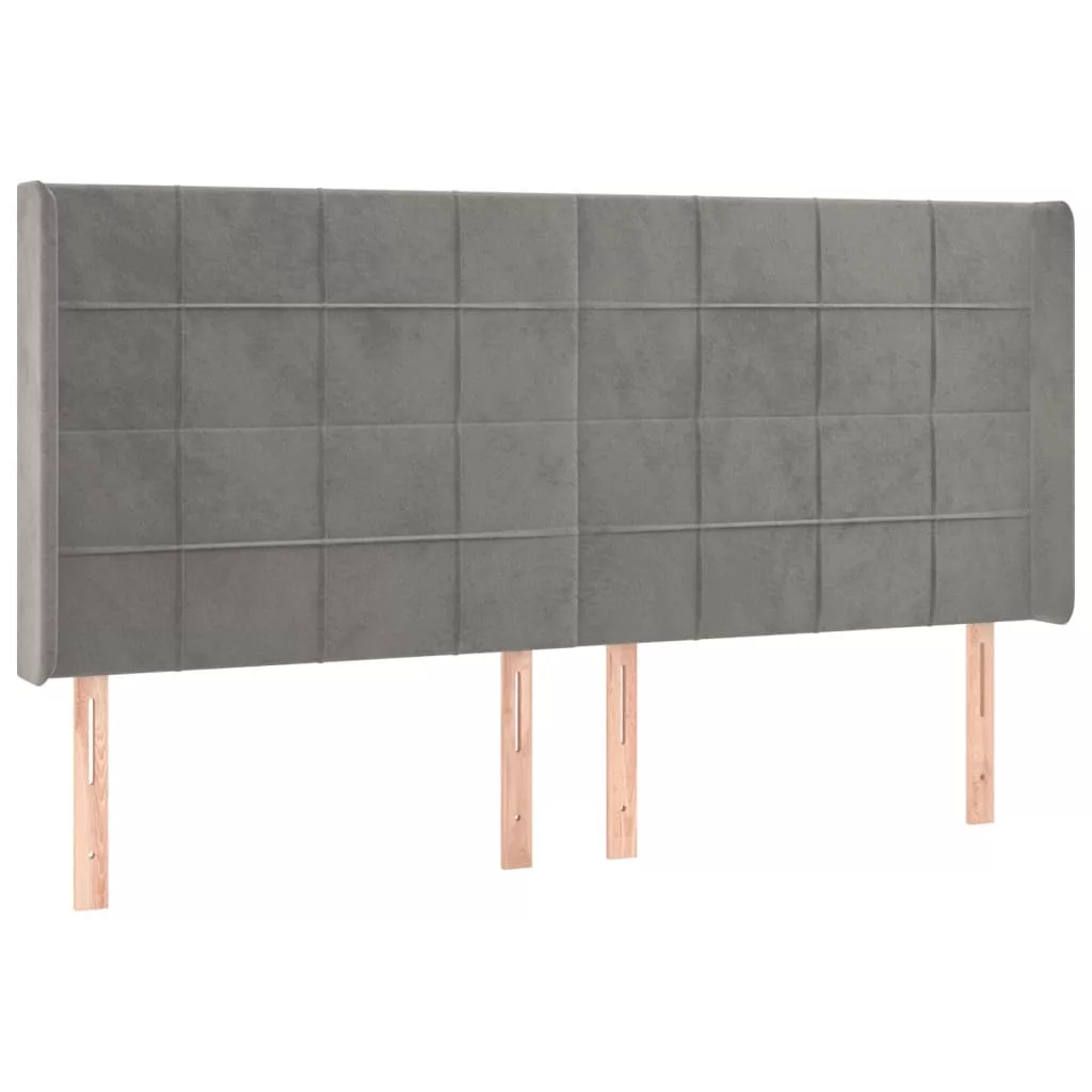 világosszürke bársony fejtámla szárnyakkal 163x16x118/128 cm