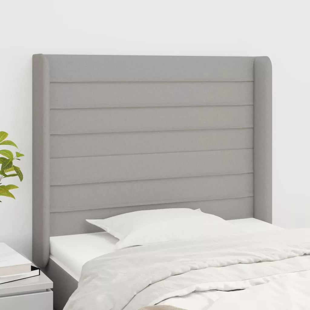világosszürke szövet fejtámla szárnyakkal 103x16x118/128 cm