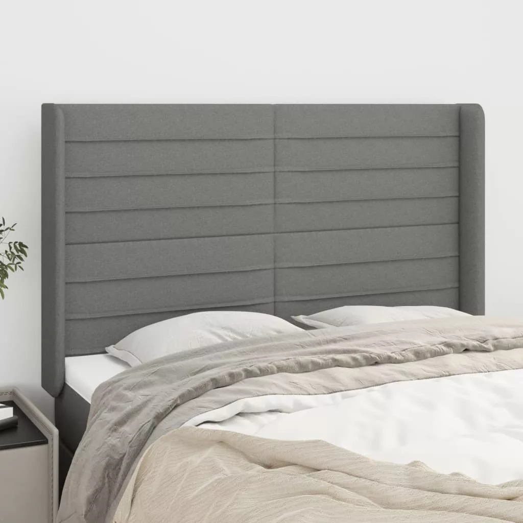sötétszürke szövet fejtámla szárnyakkal 147x16x118/128 cm