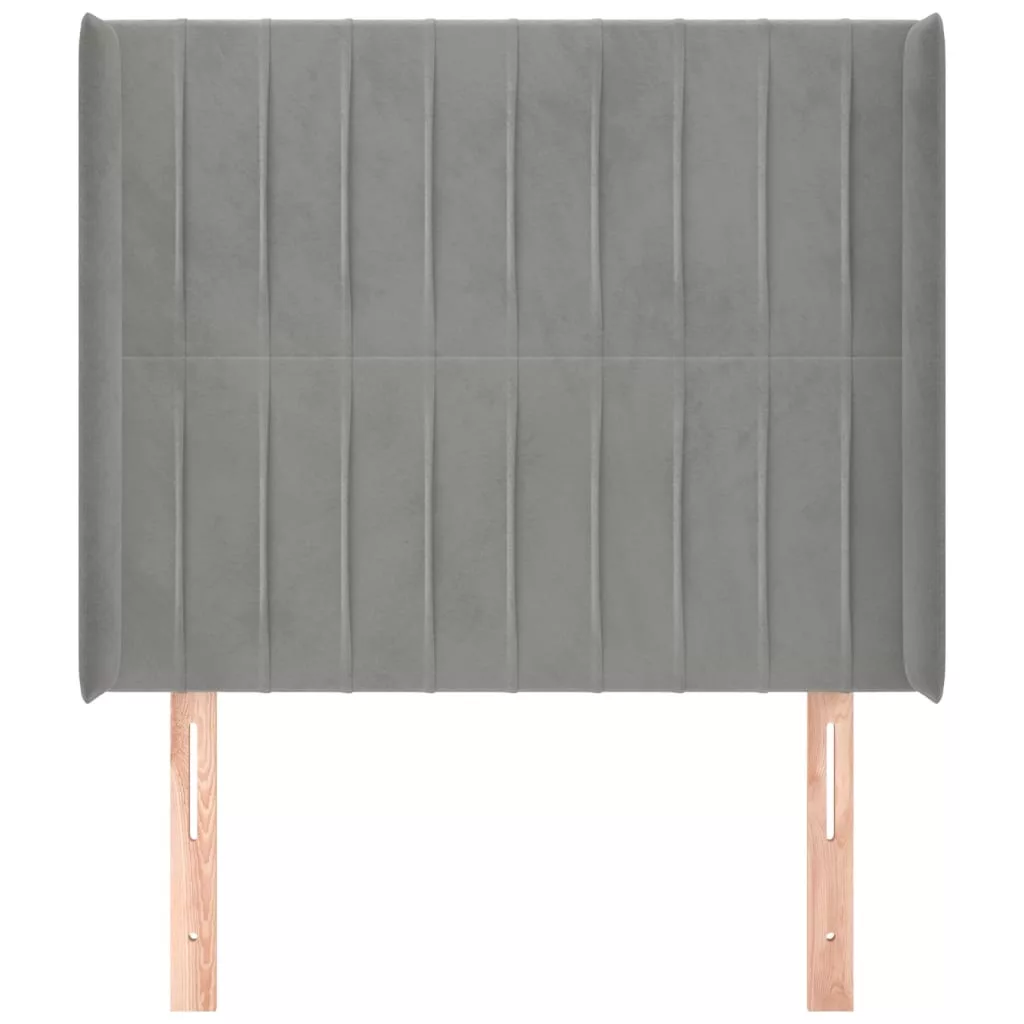 világosszürke bársony fejtámla szárnyakkal 93x16x118/128 cm