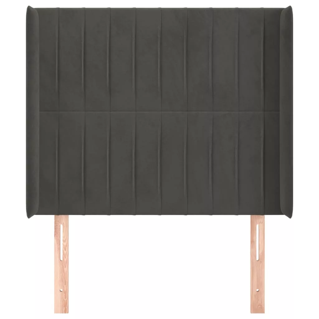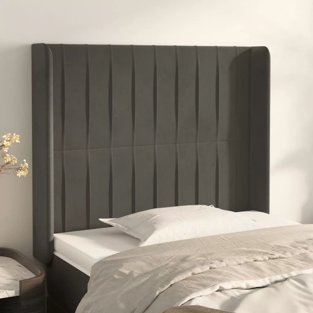 sötétszürke bársony fejtámla szárnyakkal 103x16x118/128 cm