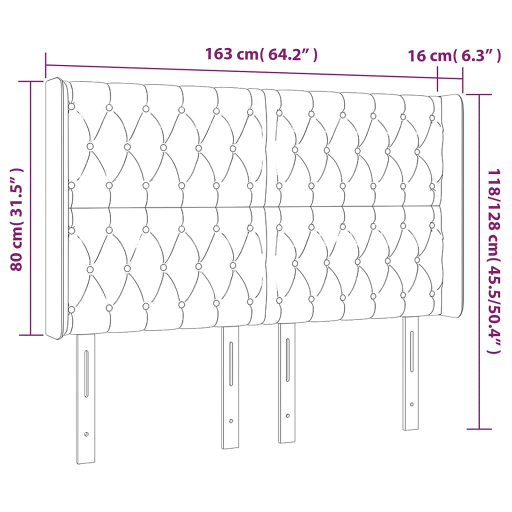 világosszürke szövet fejtámla szárnyakkal 163x16x118/128 cm