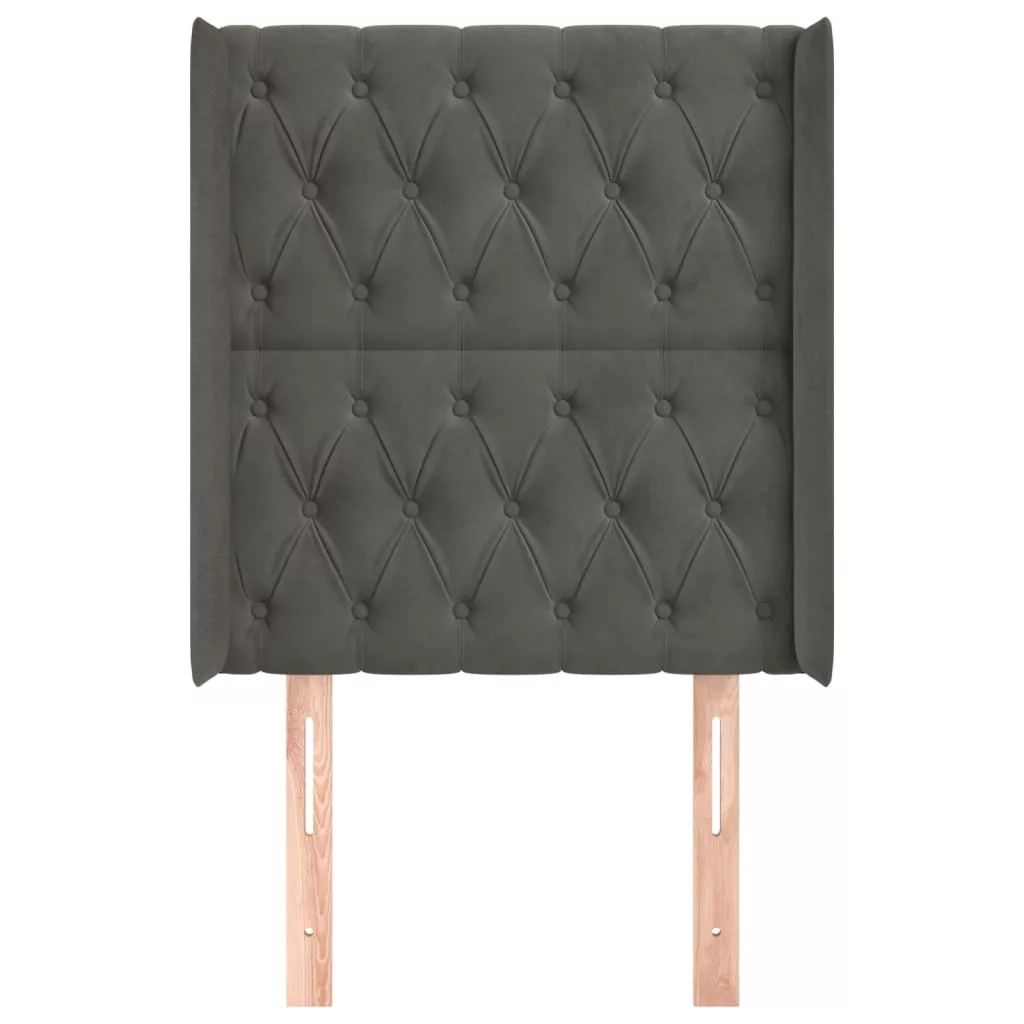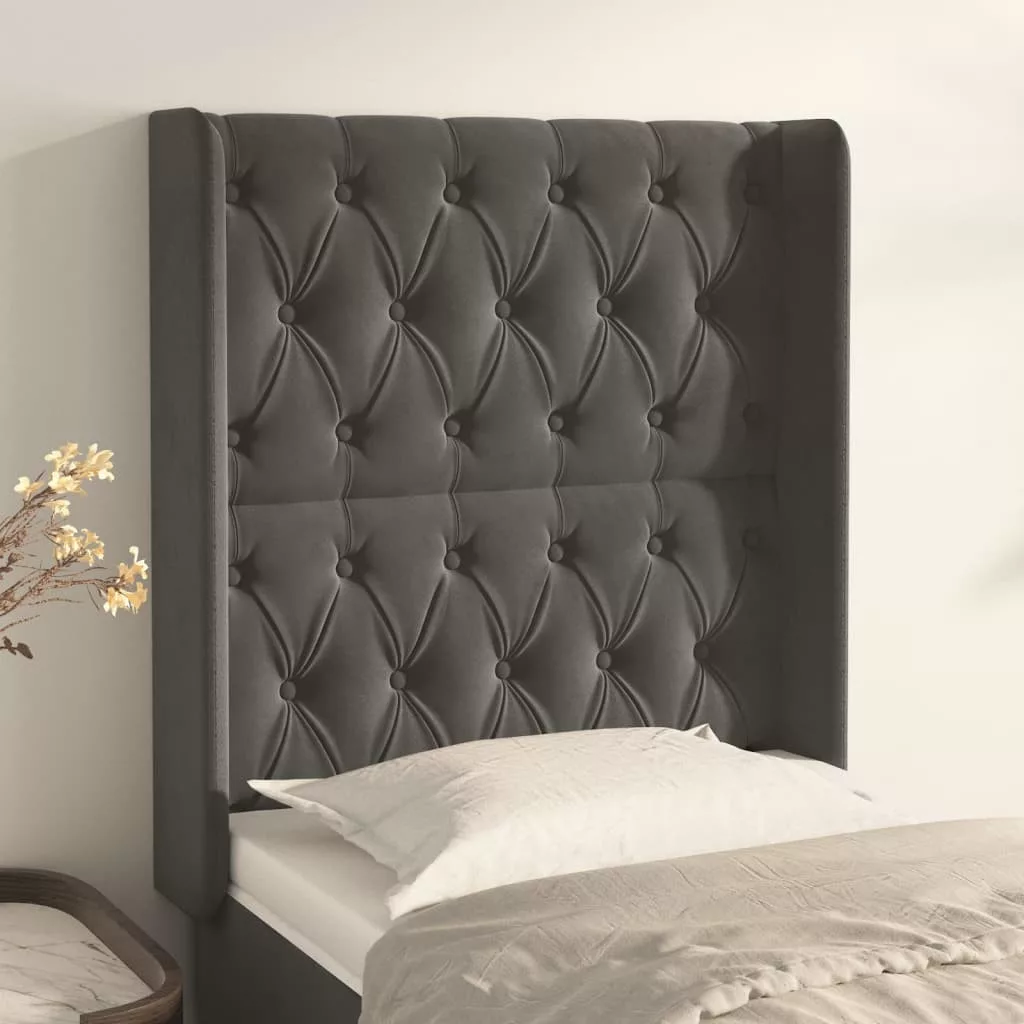 sötétszürke bársony fejtámla szárnyakkal 83x16x118/128 cm