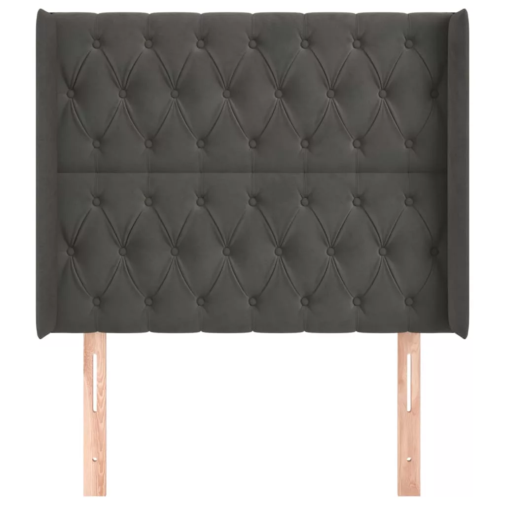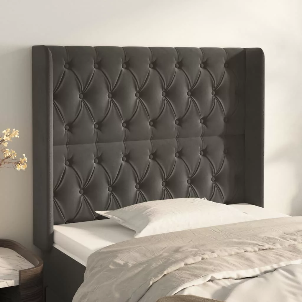 sötétszürke bársony fejtámla szárnyakkal 93x16x118/128 cm