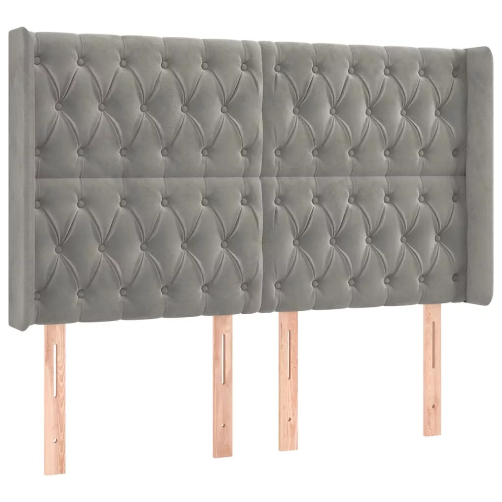 világosszürke bársony fejtámla szárnyakkal 147x16x118/128 cm