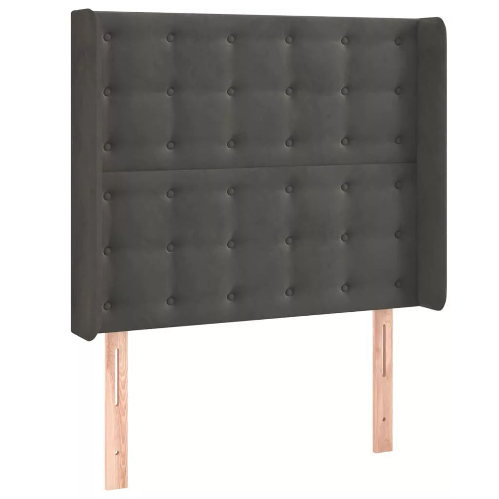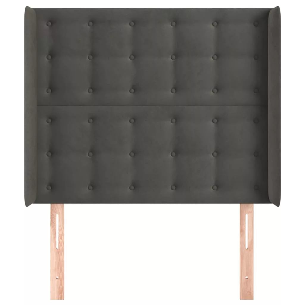 sötétszürke bársony fejtámla szárnyakkal 103x16x118/128 cm