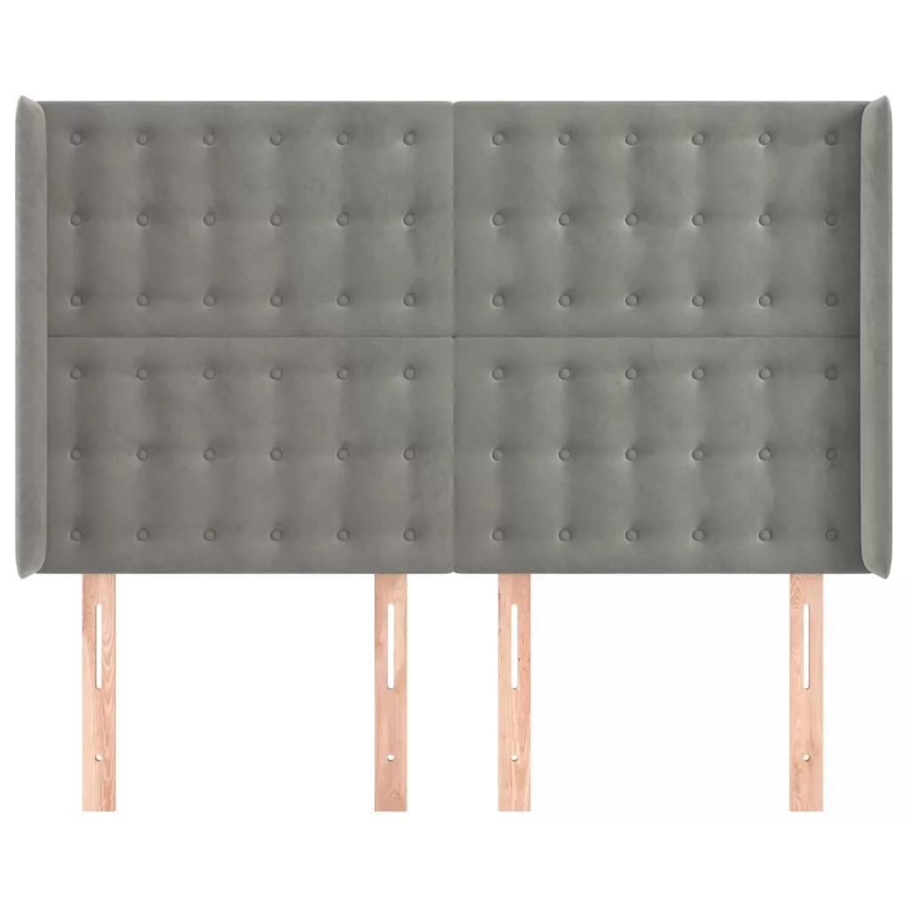 világosszürke bársony fejtámla szárnyakkal 147x16x118/128 cm