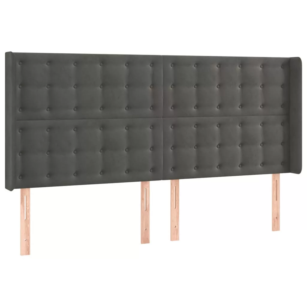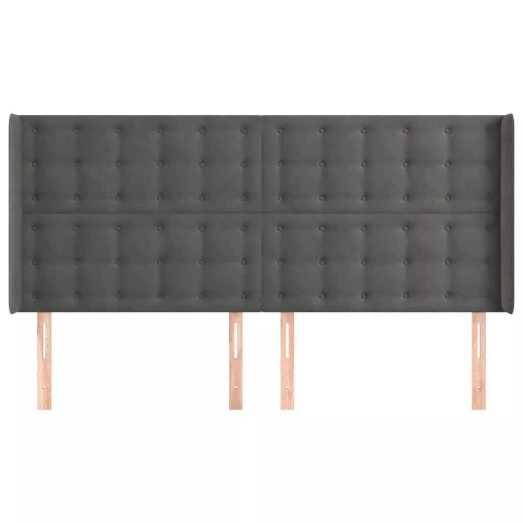 sötétszürke bársony fejtámla szárnyakkal 163x16x118/128 cm