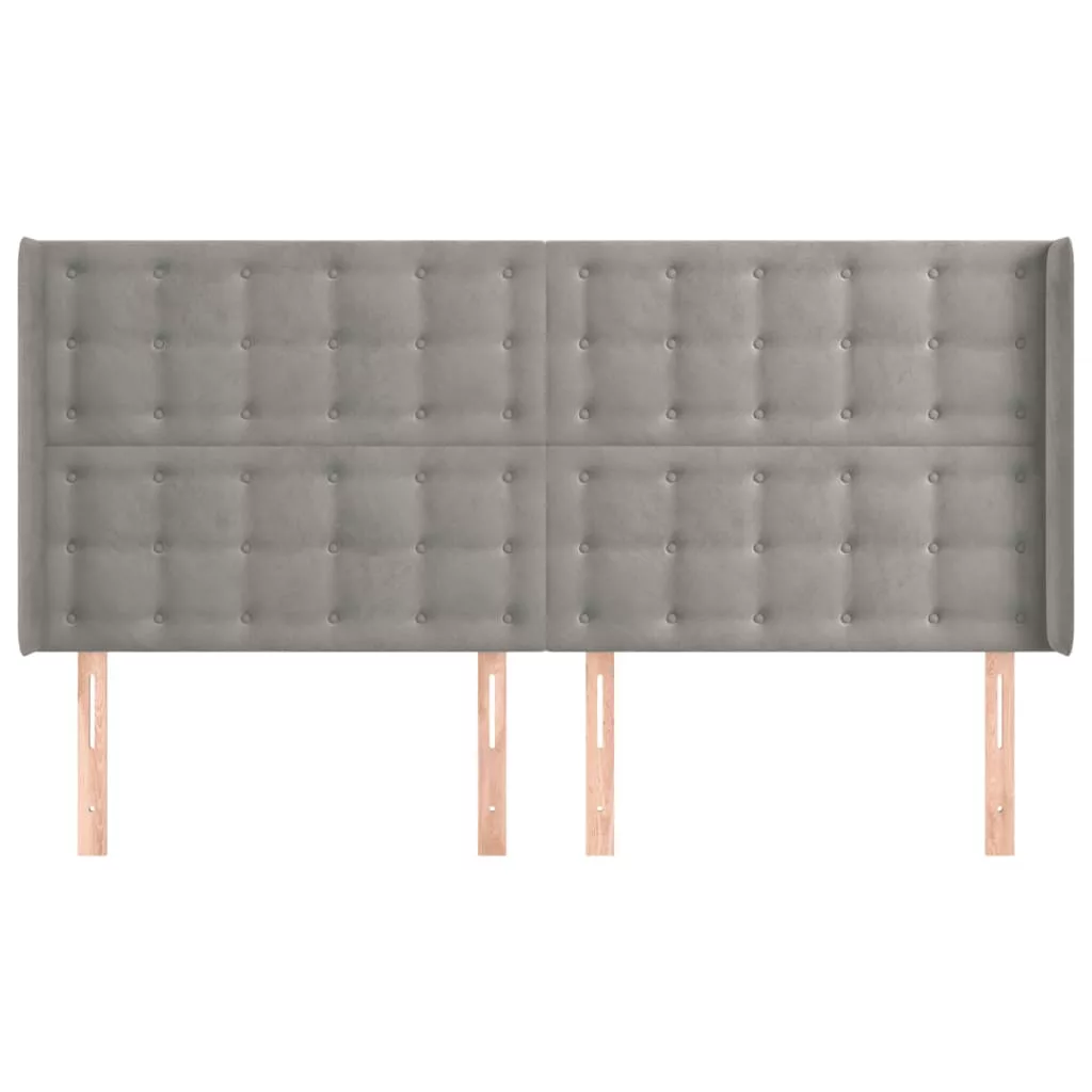 világosszürke bársony fejtámla szárnyakkal 183x16x118/128 cm