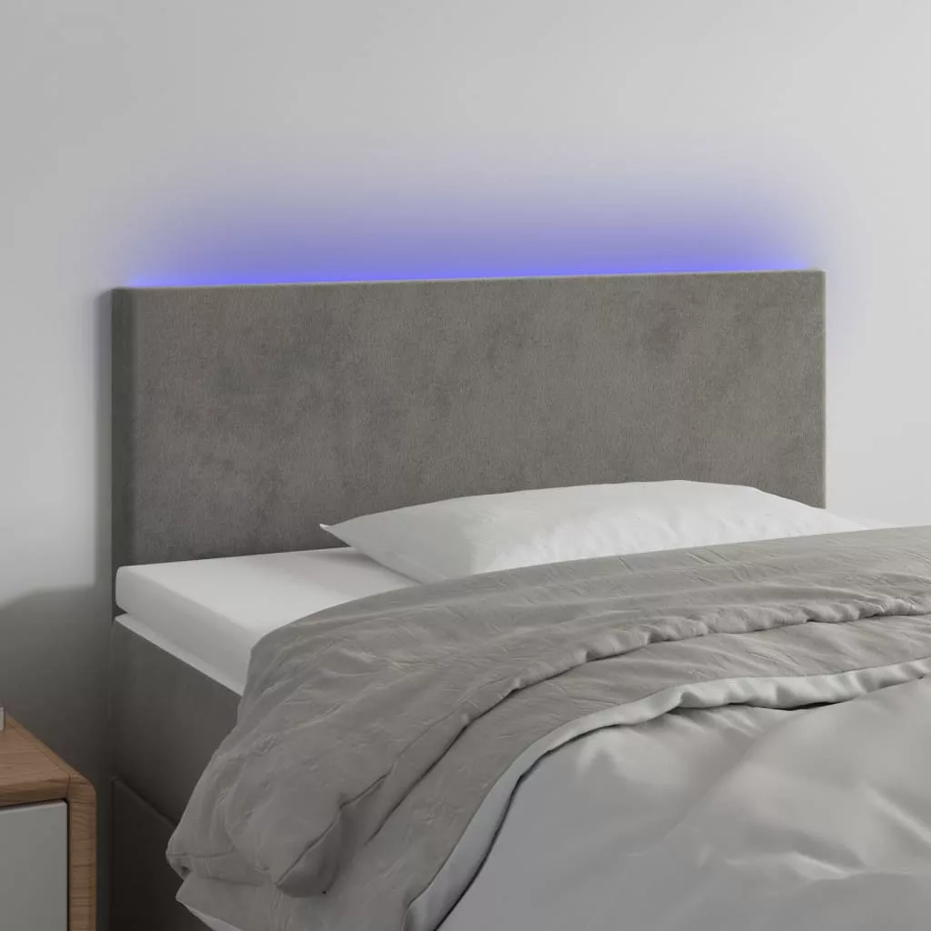 világosszürke bársony LED-es fejtámla 80 x 5 x 78/88 cm