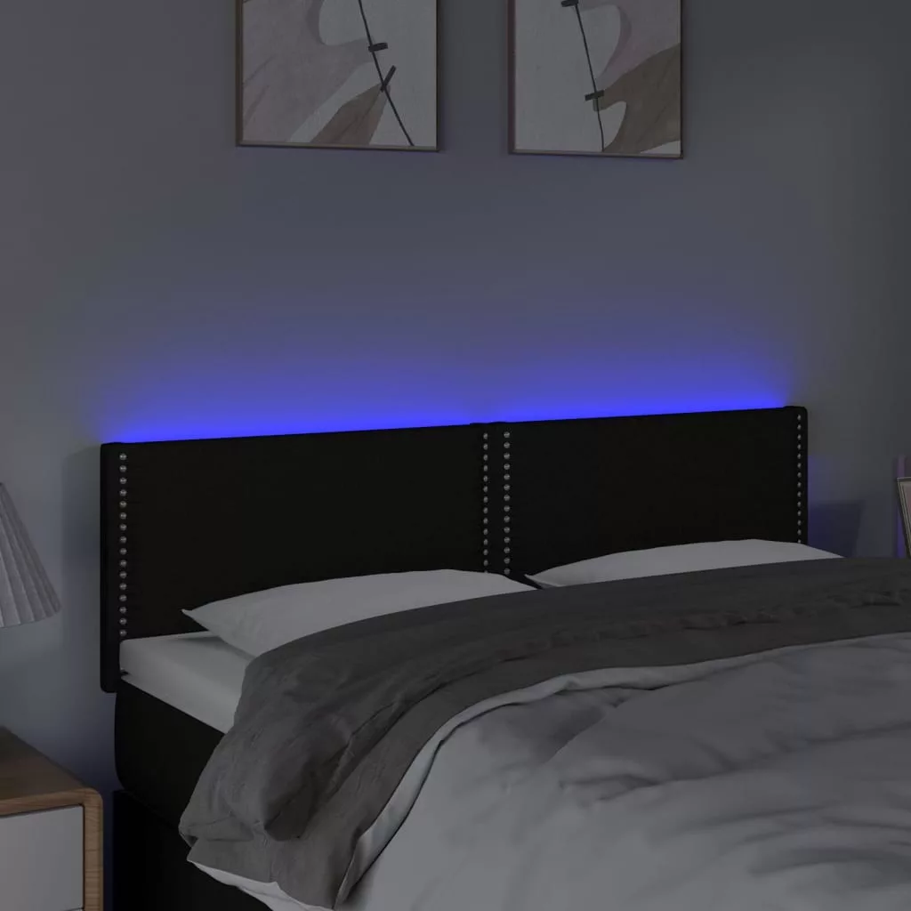 fekete szövet LED-es fejtámla 144x5x78/88 cm
