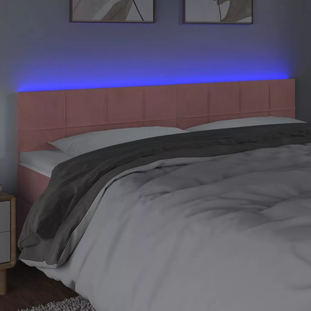 rózsaszín bársony LED-es fejtámla 160x5x78/88 cm