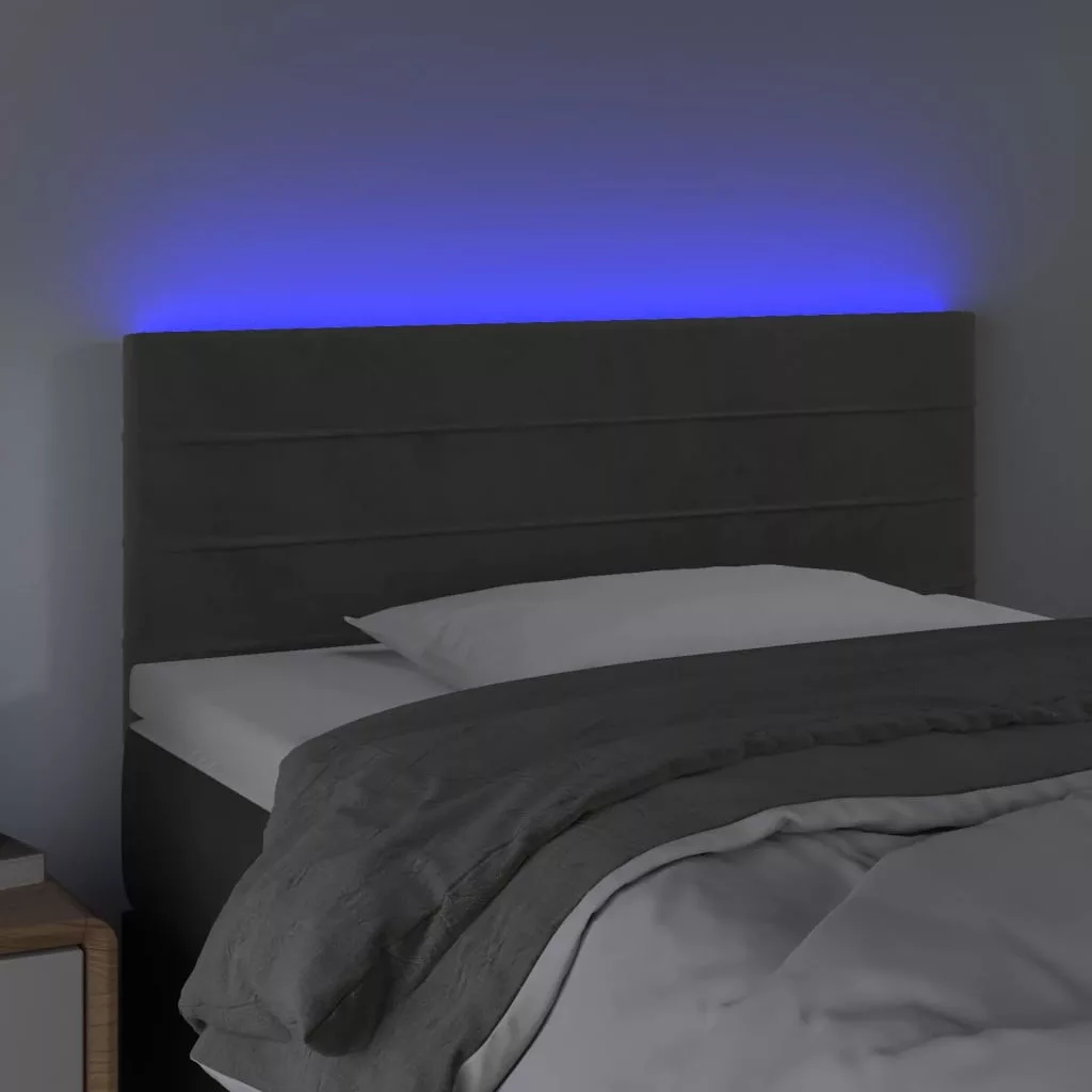 sötétszürke bársony LED-es fejtámla 100x5x78/88 cm