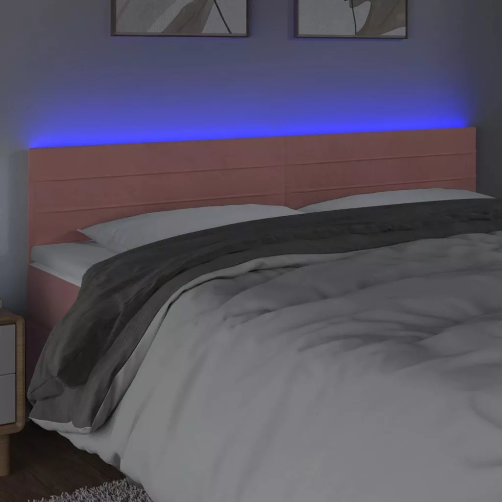 rózsaszín bársony LED-es fejtámla 160x5x78/88 cm